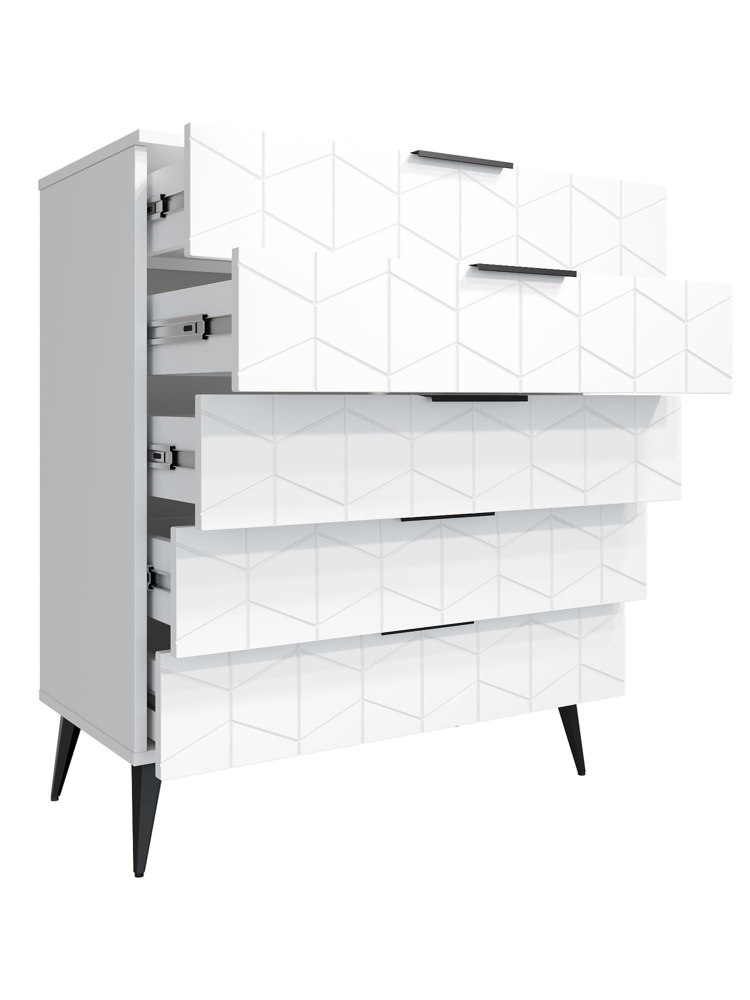 Пять выдвижных ящиков на телескопических направляющих