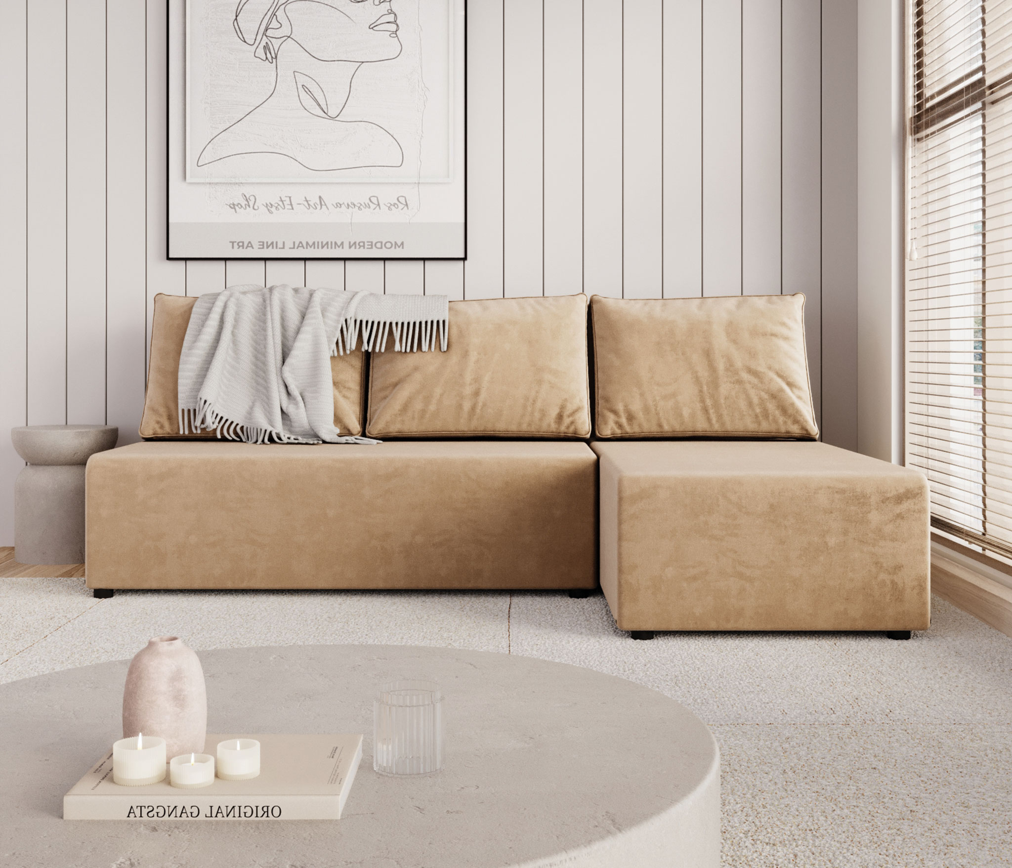 Угловой диван-кровать Комо, микровелюр (Бежевый)