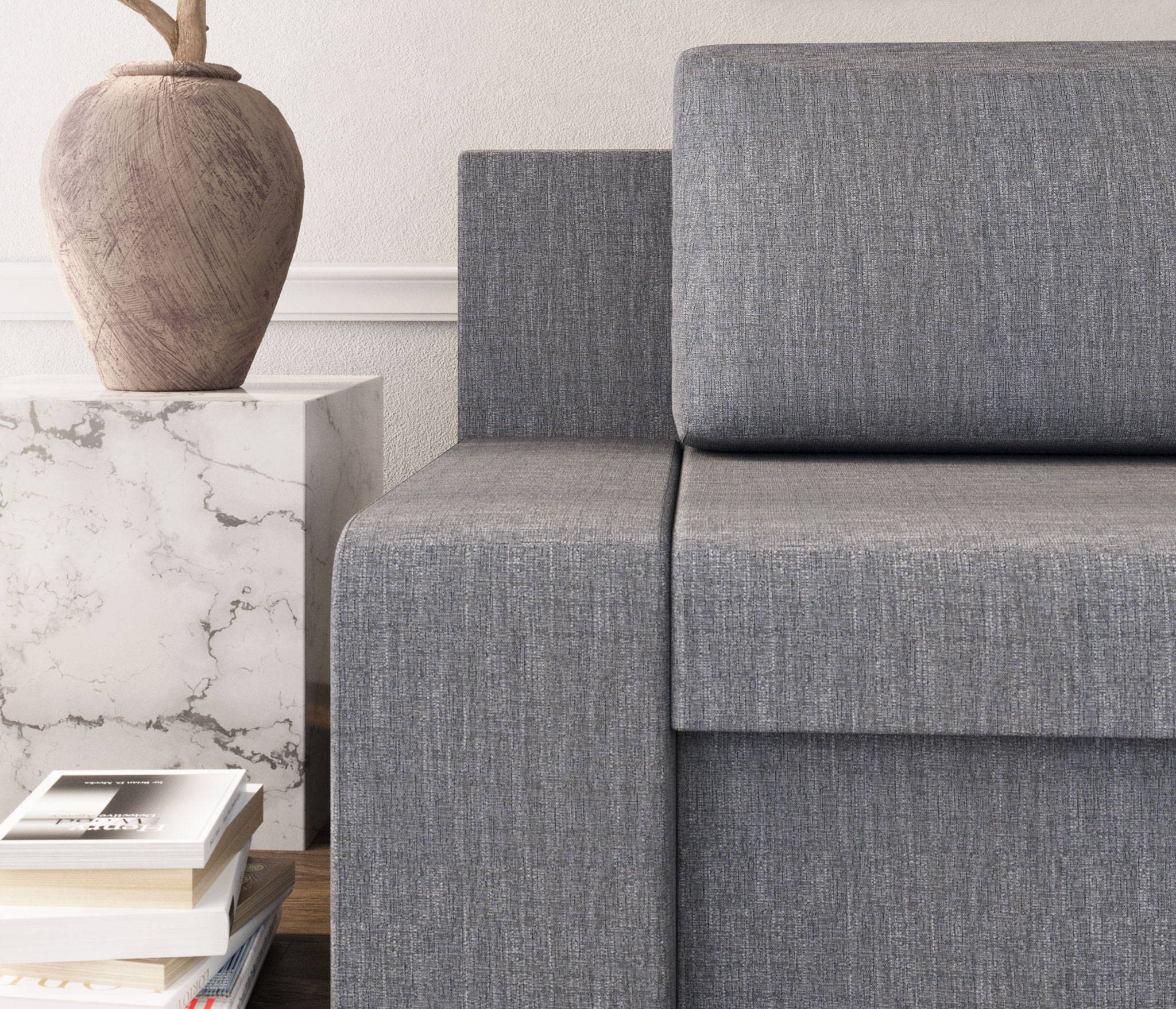 Эргономичный и функциональный диван «Монако» с механизмом «Еврокнижка» и бельевой нишей применим для ежедневной трансформации и зонирования помещения – его тыльная сторона выглядит также эстетично, как и фронтальная. Модель не имеет подлокотников, поэтому при ширине 2080 мм диван не выглядит громоздко и позволят разместить по бокам столики для настольных светильников, книг, бокала вина и других атрибутов отдыха.Обивка дивана «Монако» выполнена из мебельной рогожки, которая внешне напоминает мешковину, но приятна на ощупь, устойчива к разрывам и истиранию, легко поддается чистке. Механизм «Еврокнижка» делает модель долговечной и простой в трансформации - достаточно потянуть сиденье на себя, а в освободившуюся нишу опустить спинку. Конструкция механизма не содержит сложных узлов и движущихся частей, поэтому здесь практически нечему ломаться.Купить диван «Монако» разумно в помещение, обустроенное в стилях «скандинавский минимализм» или «эклектика», где требуется яркий и оригинальный центральный элемент интерьера зоны отдыха. Завершат ансамбль подходящие по дизайну кресла, журнальный столик и другие элементы зоны отдыха.