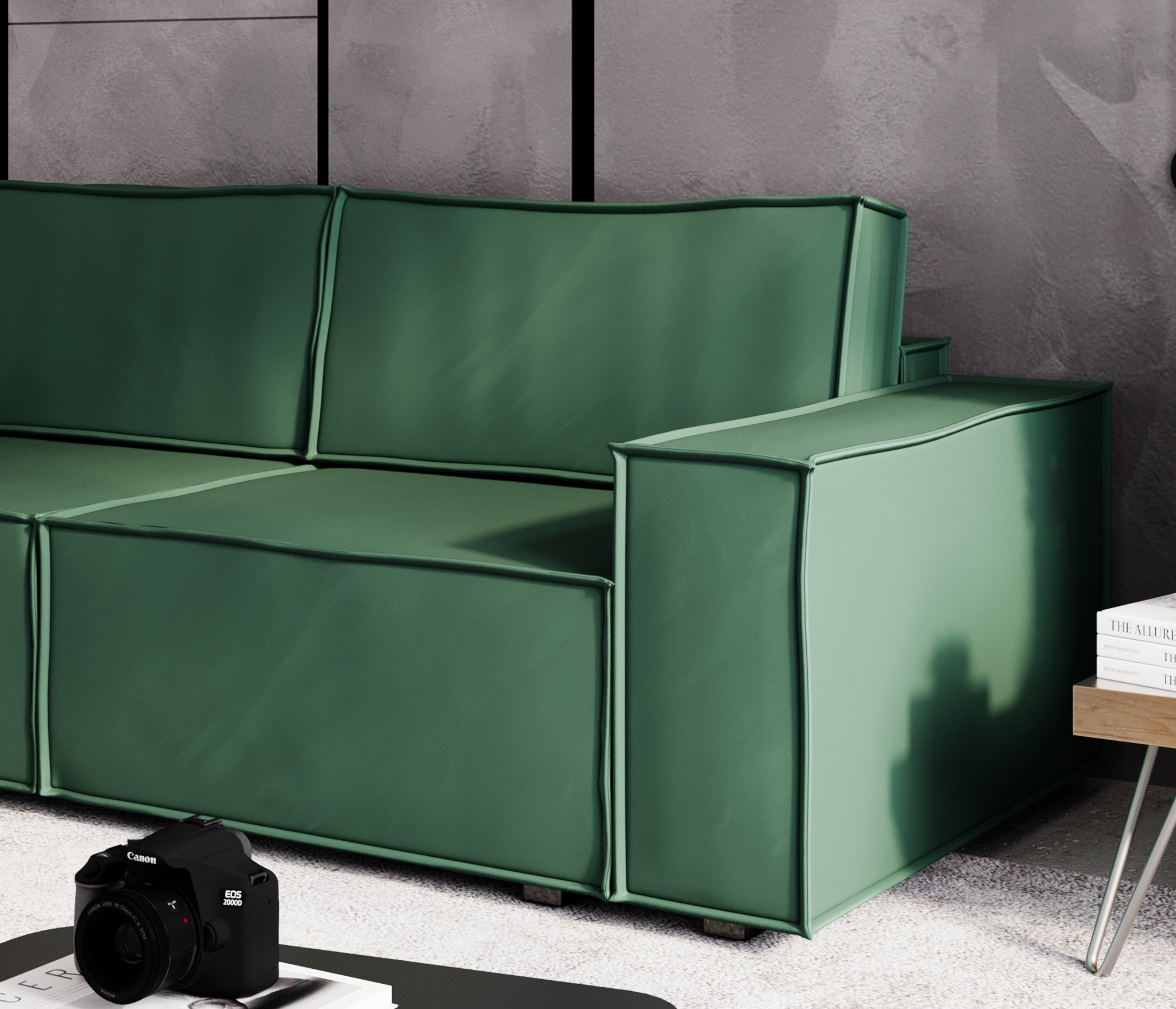 Неоспоримым преимуществом дивана является водоотталкивающее покрытие, а также повышенная износоустойчивость - 100.000 циклов по Мартиндейлу.