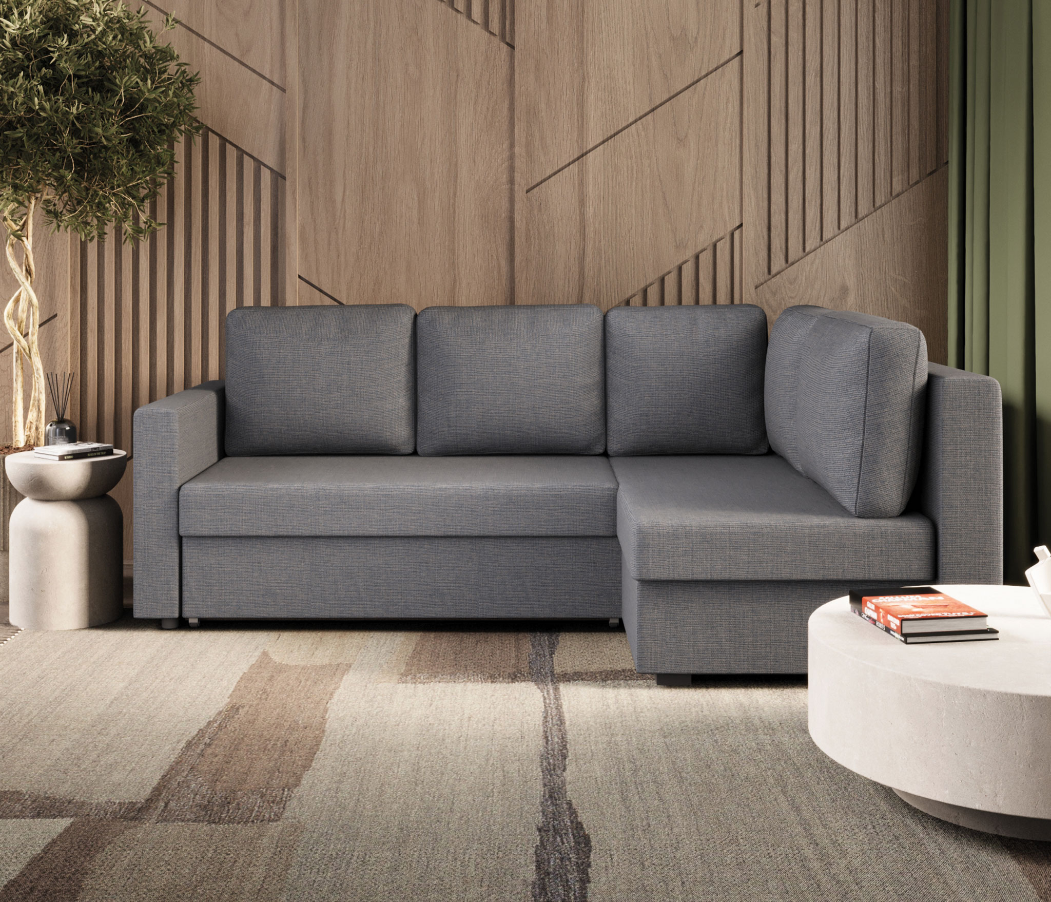 Каркас дивана «Джессика» выполнен из бруса и высокопрочной ЛДСП – ламинированной древесно-стружечной плиты, надежно удерживающей крепежные элементы. Мягкие части модели созданы на основе современного материала ППУ (пенополиуритана), полученного из синтетических полимеров и обработанного антигрибковым и антибактериальным составами. Материал долговечен, экологически безопасен, быстро восстанавливается после смятия, не плесневеет, не впитывает и не выделяет пыль. Обивка из рогожки приятна на ощупь, устойчива к разрывам и истиранию, не мнется, не растягивается и легко чистится.Простоту эксплуатации этого дивана обеспечивает выкатной механизм «Дельфин», позволяющий двумя движениями создать ровное и упругое спальное место размером 1400 х 1900 мм – достаточно выкатить вперед основание, а в освободившуюся нишу опустить спинку. Поэтому можно купить угловой диван «Джесика» для ежедневного пользования, а лаконичный дизайн и нейтральная цветовая гамма снимают ограничения при выборе дополнительных элементов интерьера – журнального столика, кресел, стеллажей и элементов декора.