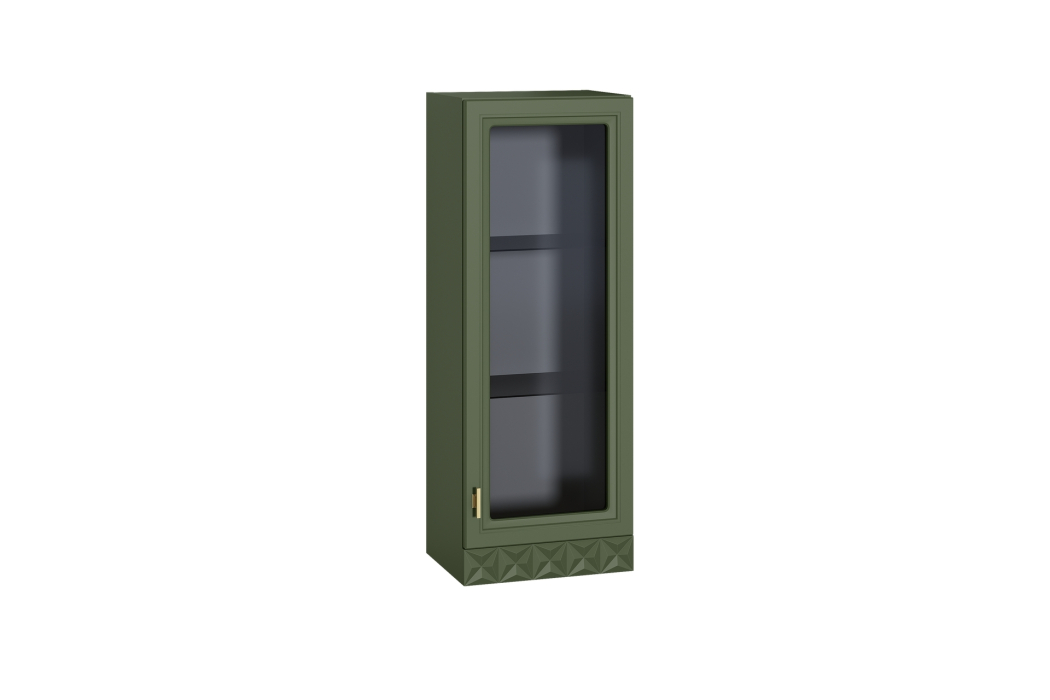Изящные линии, глубокая фрезеровка фасадов из МДФ и благородные оттенки. Утончённая «Слоновая кость» и изысканная «Олива Шагрень» с глубоким зелёным тоном — создают атмосферу уюта, тепла и благородства. Металлические ручки и опоры золотого цвета придают мебели утончённый блеск, а петли и направляющие с доводчиками обеспечивают плавное и бесшумное закрытие фасадов.