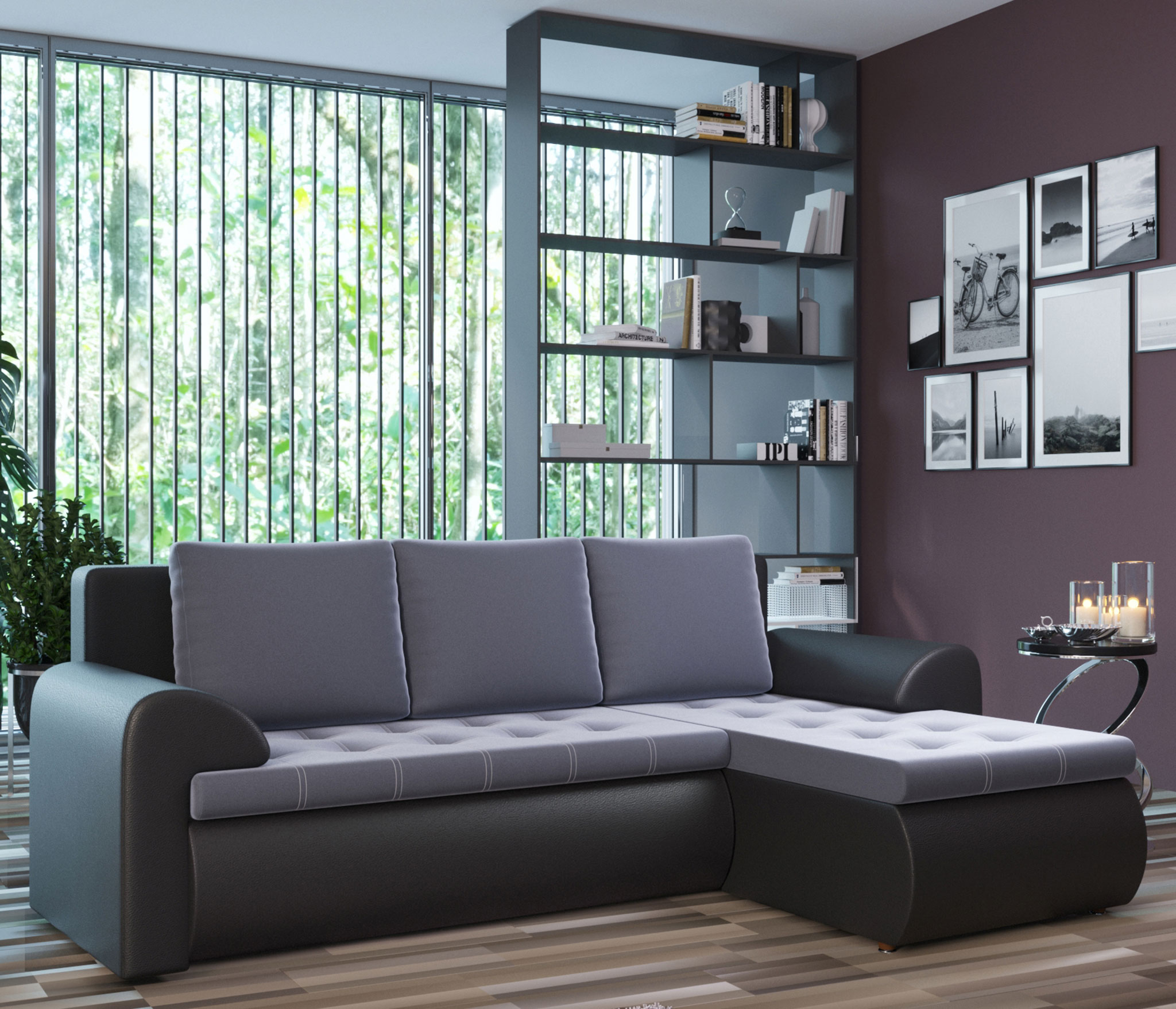 Отзывы о Столплит Угловой диван Ванкувер правый, экокожа /велюр Черный/Серый
