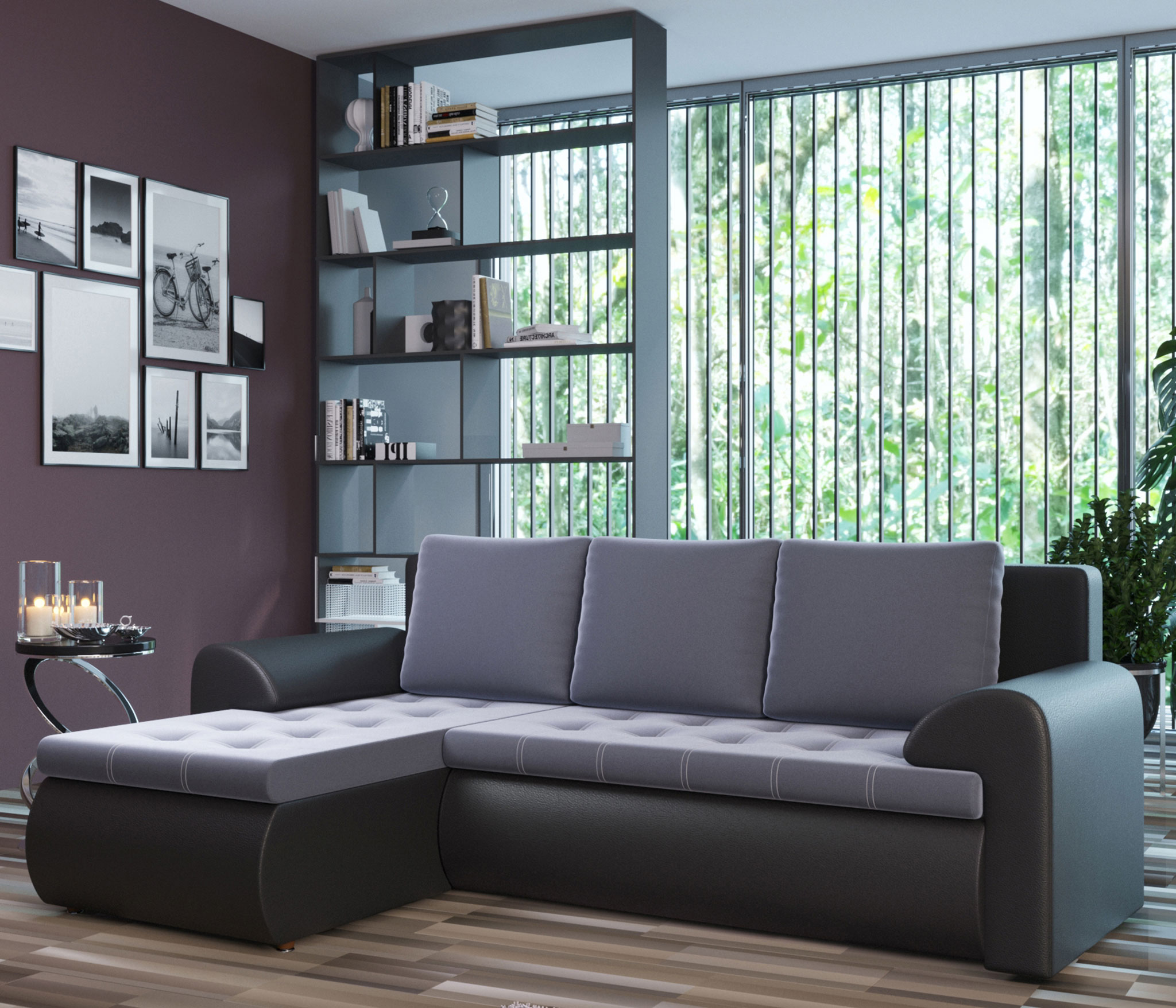 Отзывы о Столплит Угловой диван Ванкувер левый, экокожа/велюр Черный/Серый