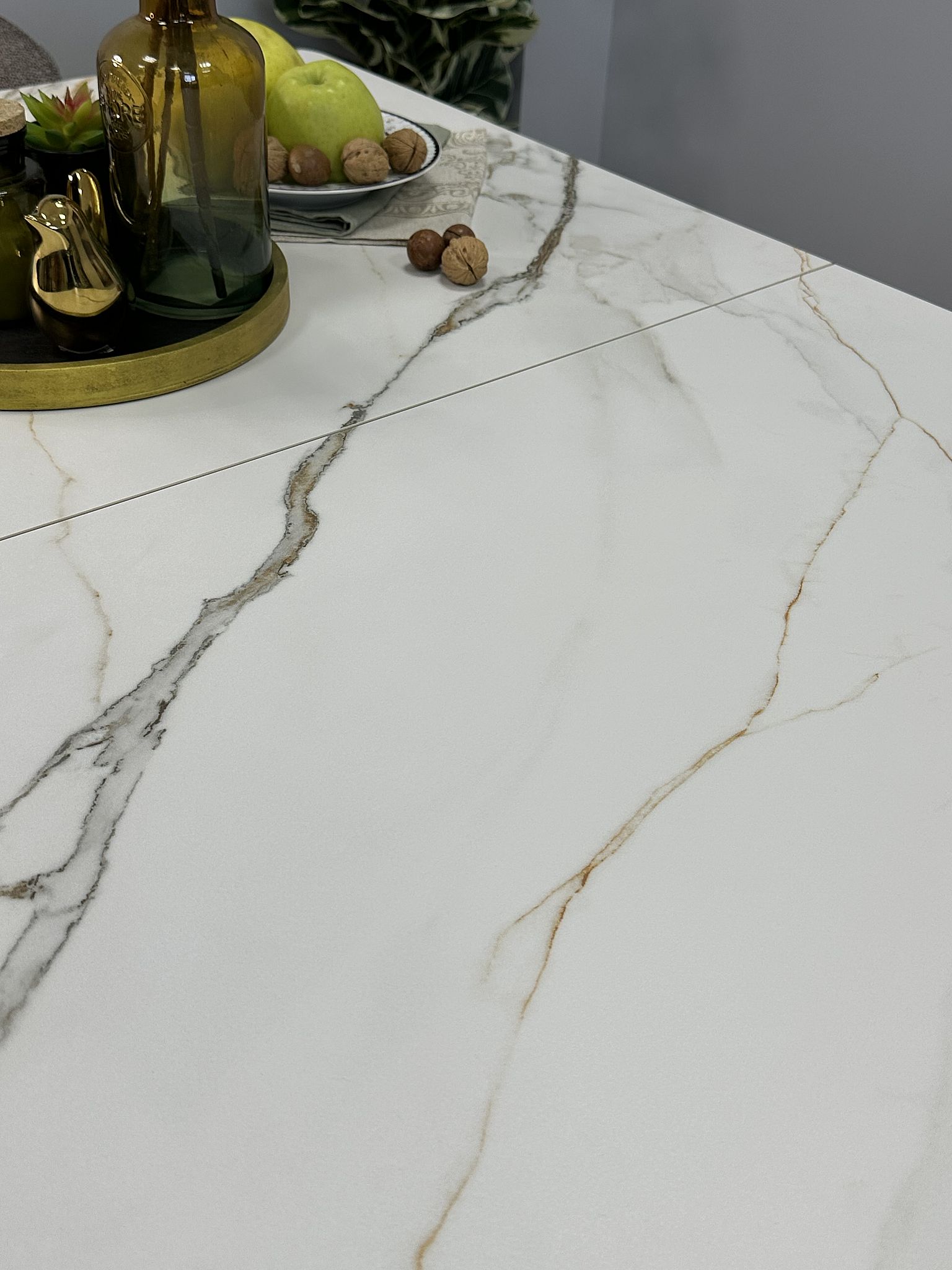 Керамика - наилучший и самый дорогой материал для обеденного стола. Она не портится от влаги, выдерживает температуру до 1000°С. Плотность керамики выше плотности металла и на ней не останутся следы от столовых приборов. Кроме того, это 100% натуральный материал, в отличие от разного вида пластиков