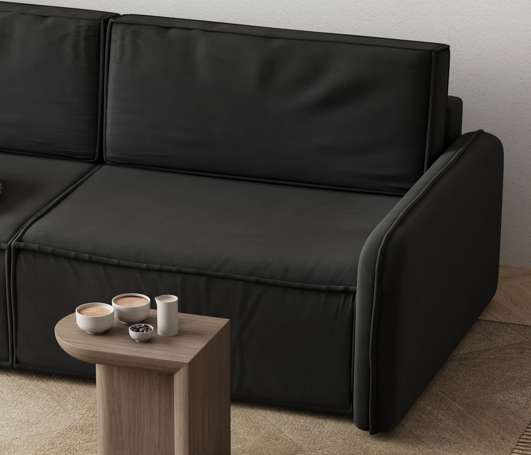 • Универсальность: Угловая конфигурация позволяет экономить пространство и создавать уютную зону отдыха.