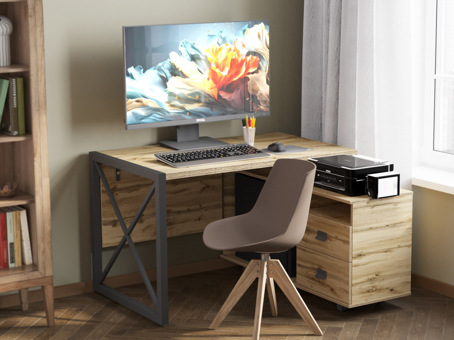 Стол является удобным и безопасным в эксплуатации, используется для организации рабочего пространства в современном модном стиле. Металлические опоры конструкции толщиной 40*40 мм. Встроенная тумба увеличивает полезную площадь размещения и имеет эстетически привлекательный внешний вид. Вместительные ящики на шариковых направляющих с бесшумным открытием из ЛДСП помогут организовать хранение различных предметов: книг, журналов, сувениров и прочих предметов интерьера. Конструкцию можно установить в детскую комнату, купить для домашнего кабинета, для дома, для офиса или приемную. Столешница 120*75 см.