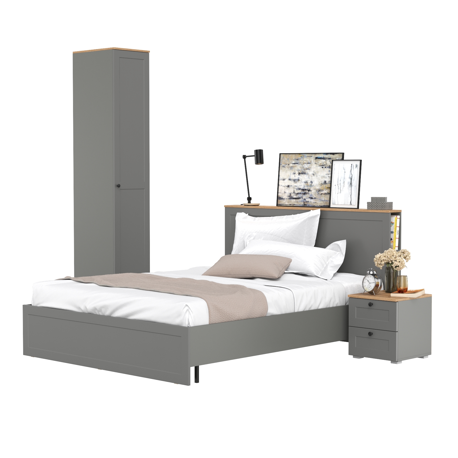 Кровать двуспальная Остин с ортопедом и платяной шкаф-пенал с тумбой прикроватной (Крафт золотой/Серый) Код I0000449799