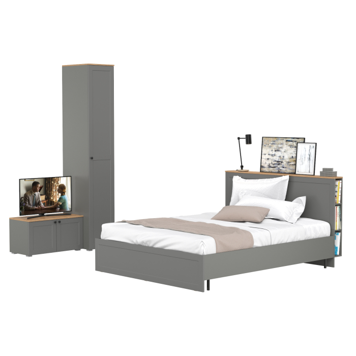 Отзывы о Столплит Тумба с дверками Остин 13.257 с кроватью 1600 с основанием и пенал для одежды Крафт золотой/Серый