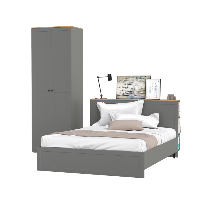 Отзывы о Столплит Шкаф-комод для одежды Остин и кровать с ортопедическим основанием 1600 Крафт золотой/Серый