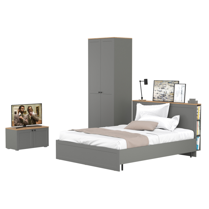 Отзывы о Столплит Кровать с ортопедическим основанием Остин и шкаф-комод для одежды с тумбой с дверками Крафт золотой/Серый