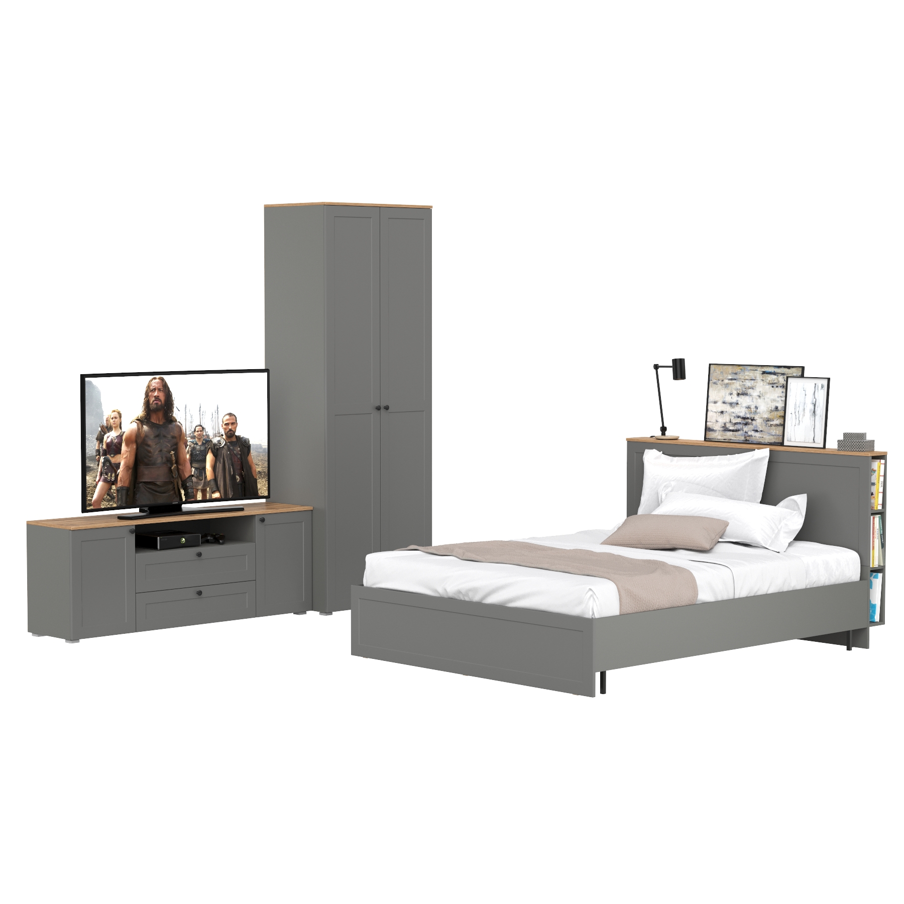 Отзывы о Столплит Кровать двухспальная с ортопедическим основанием Остин и шкаф для одежды 13.224 с тумбой под ТВ Крафт золотой/Серый