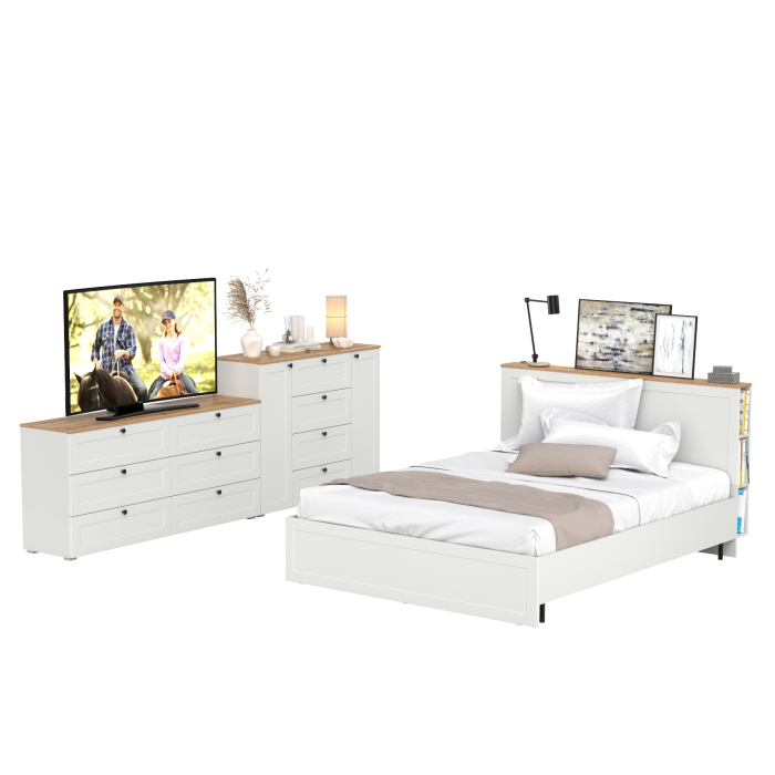 Спальный гарнитур из двуспальной кровати с основанием и двух комодов Остин 16.240 и 16.221 Код I0000449854