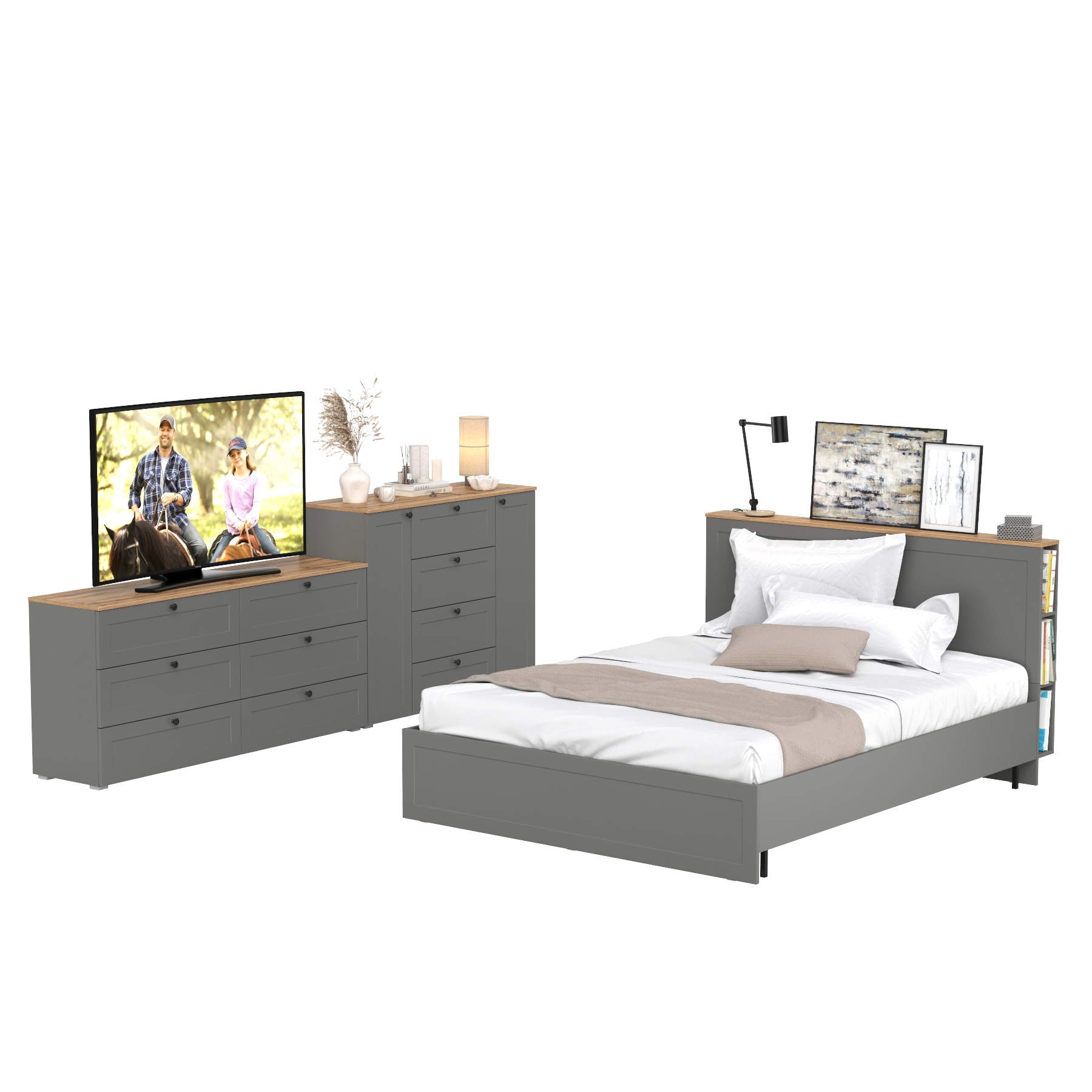 Остин спальный гарнитур из двуспальной кровати с основанием и двух комодов 16.240 и 16.221. Комплектация состоит из двуспальной кровати Остин 11.53 с ортопедическим основанием, широкого комода Остин 16.240 и комода Остин 16.221.