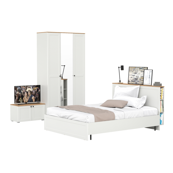 Остин спальня из кровати 1600 с ортопедом и шкафа для одежды 13.336.03 и тумбы две дверки. Комплектация состоит из двуспальной кровати Остин 11.53 с ортопедическим основанием, низкой тумбы Остин 13.257 и шкафа с зеркалом Остин 13.336.03.