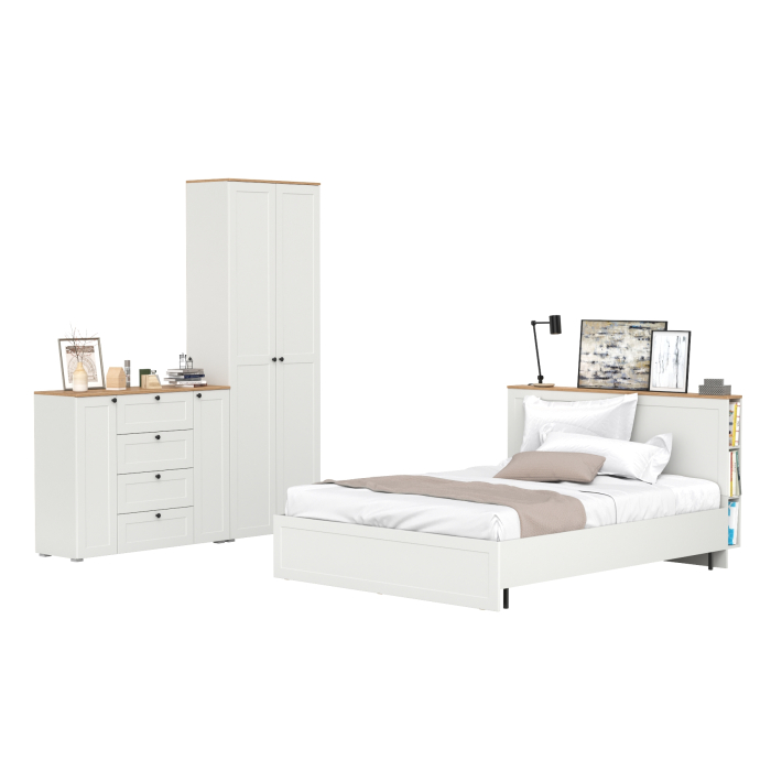 Отзывы о Столплит Мебель для спальни Остин из кровати 1600 с основанием и шкаф двудверного с комодом 16.221 Крафт золотой/Белый