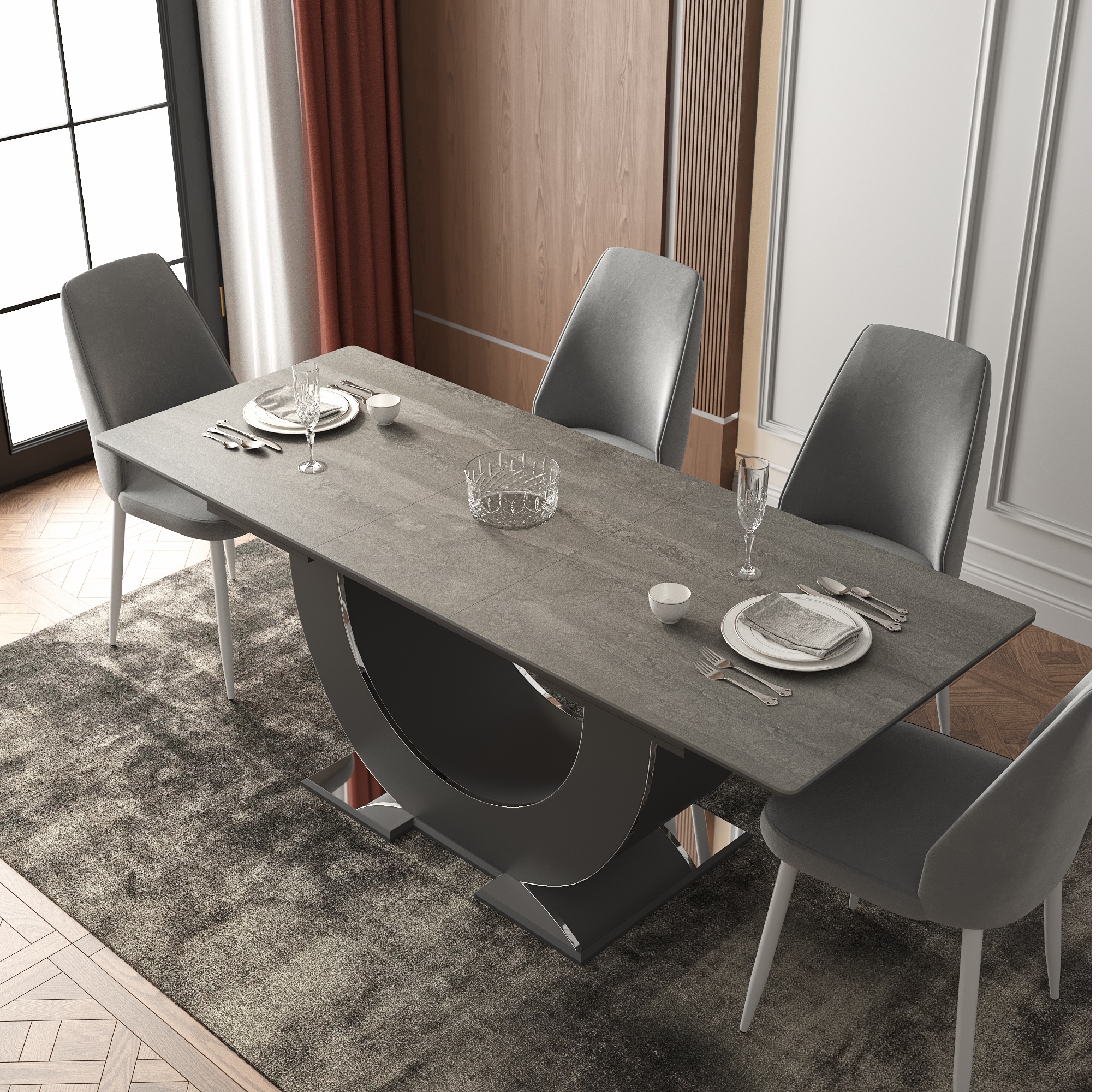 Стол Монако, столешница керамогранит (1600/2000х900х820) серебро Код I0000449898