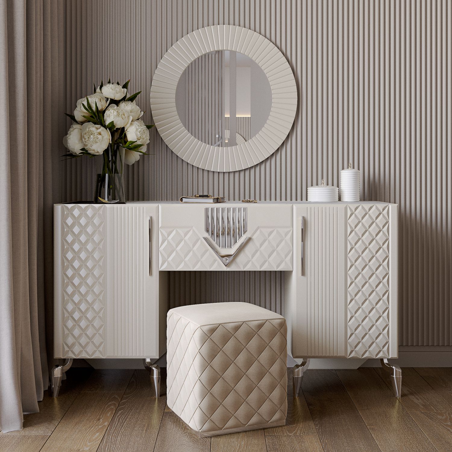 Пуф — это не только удобная мебель, но и стильный аксессуар. Пуф в прихожую подчеркнёт вашу индивидуальность, а пуф для туалетного столика добавит элегантности. Пуф круглый в таком исполнении станет прекрасным дополнением любого интерьера.