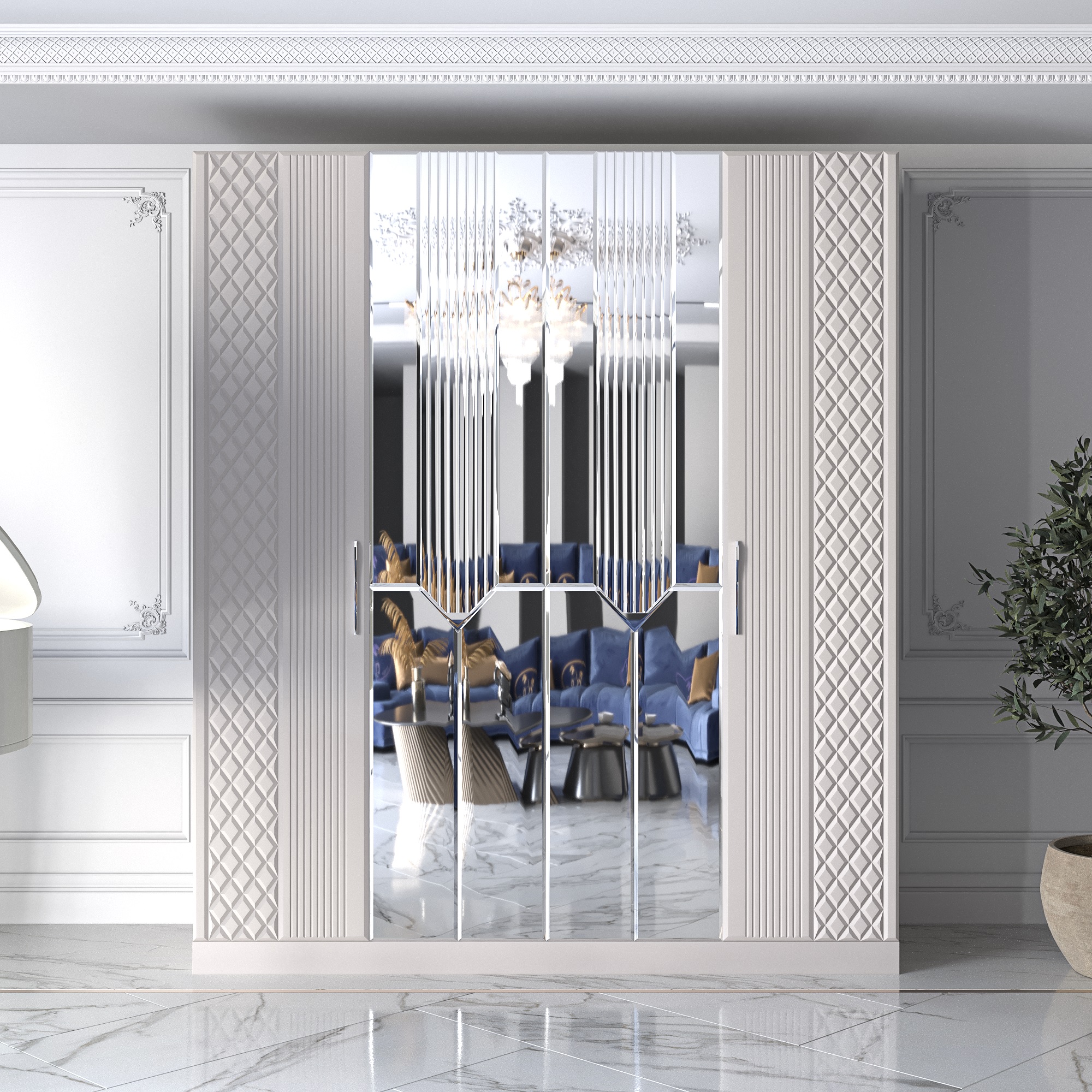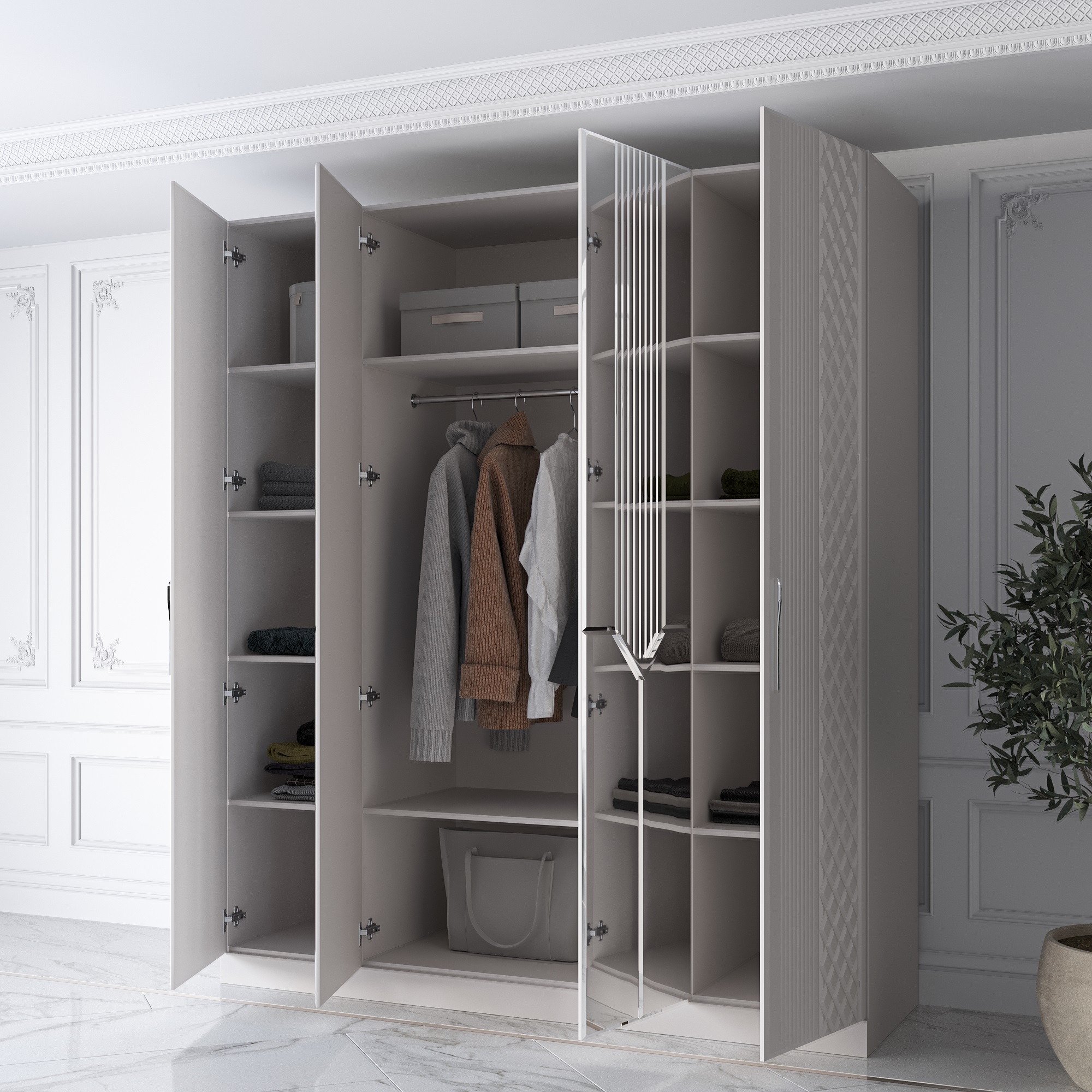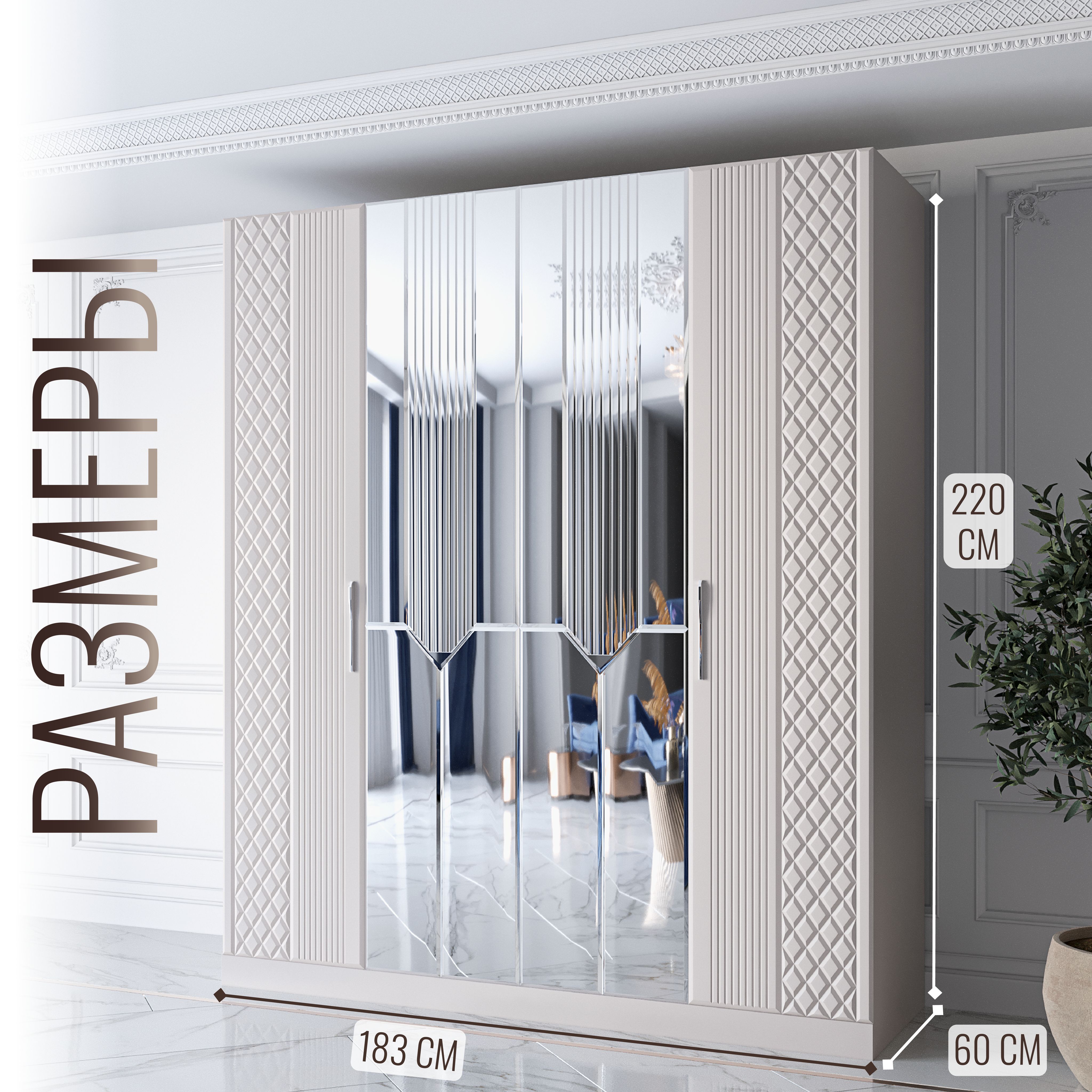 Шкаф распашной 4-х дверный с зеркалом Савелья кашемир Код I0000449917