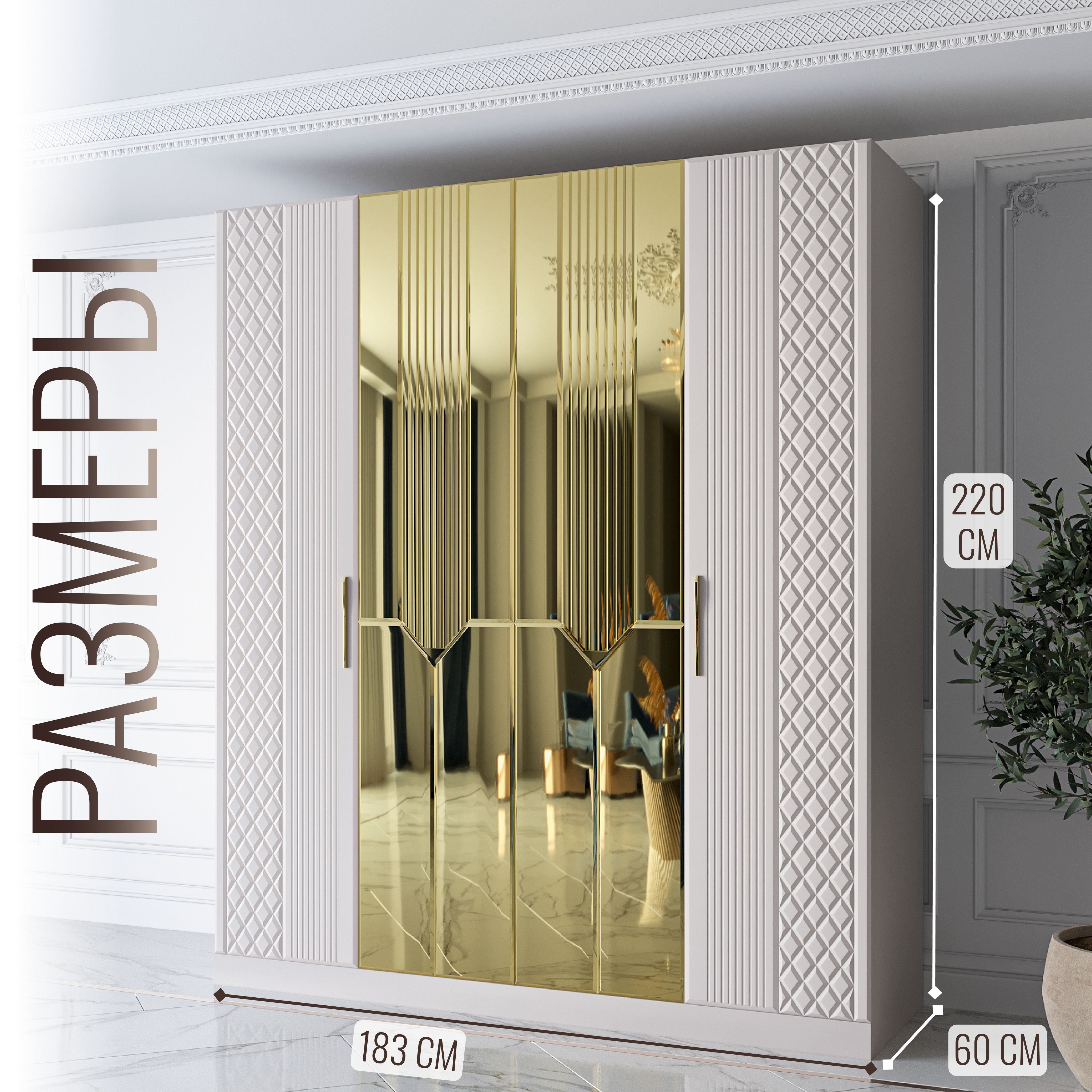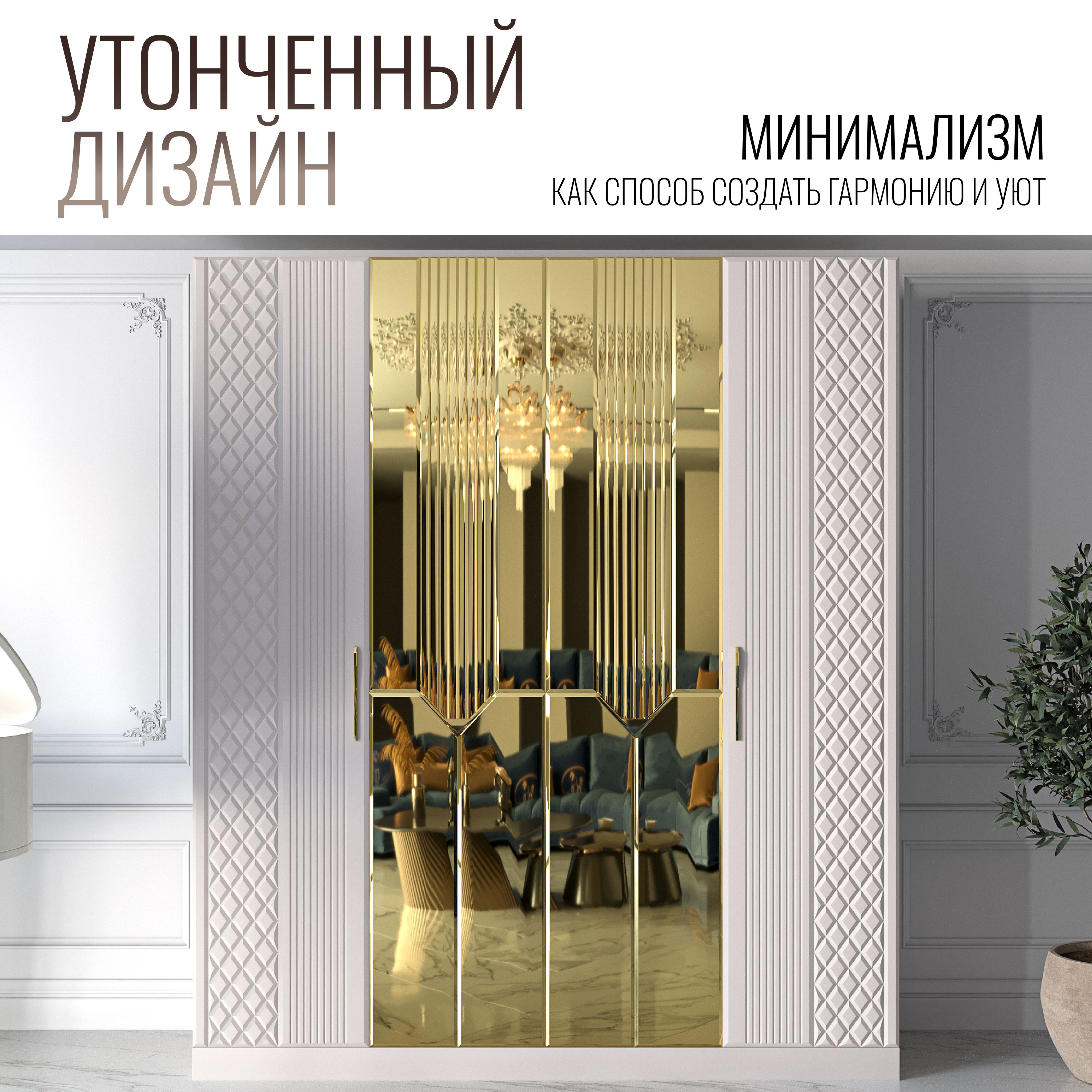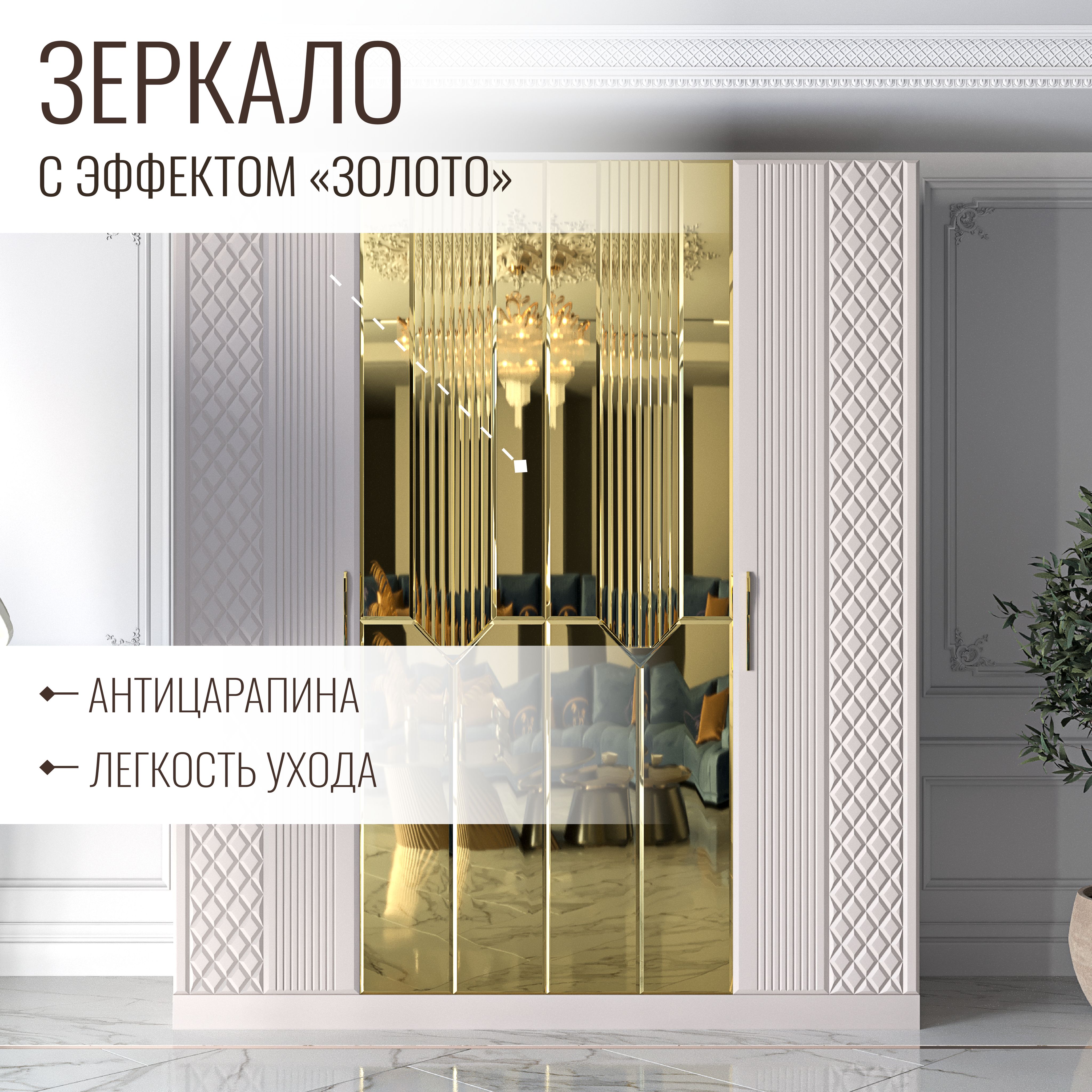 Шкаф распашной 4-х дверный с зеркалом Савелья кашемир (Золотой глянец)