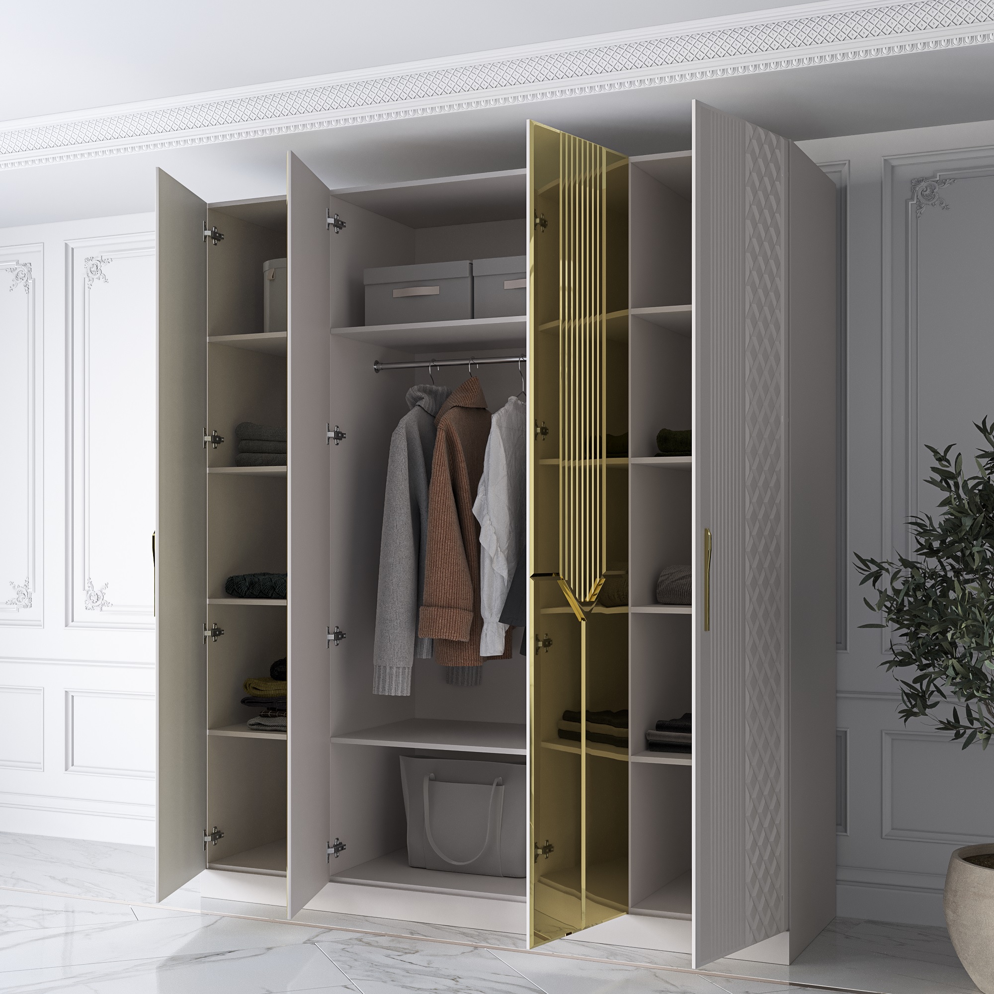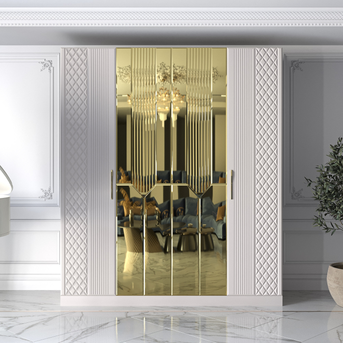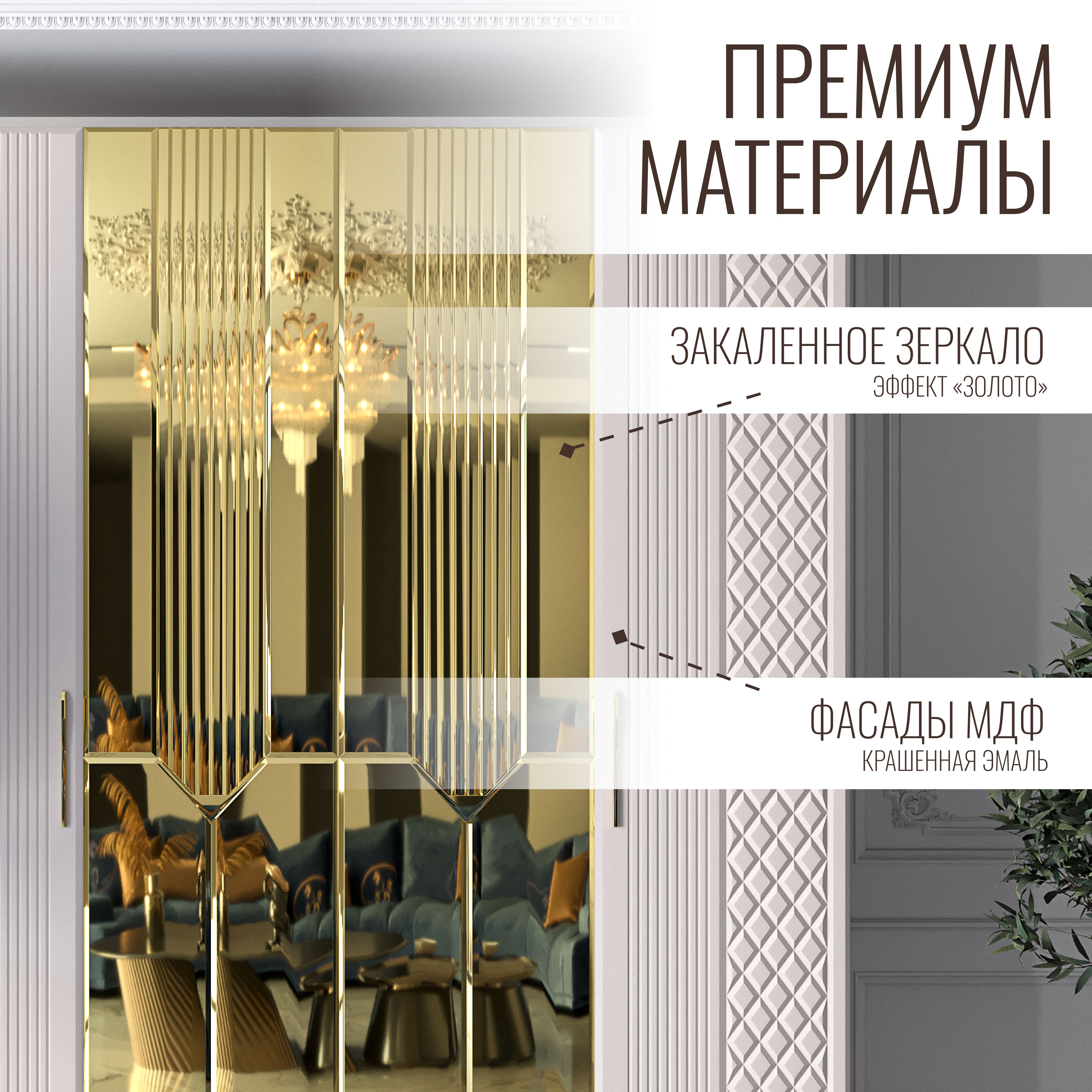 Шкаф распашной 4-х дверный с зеркалом Савелья кашемир (Золотой глянец)