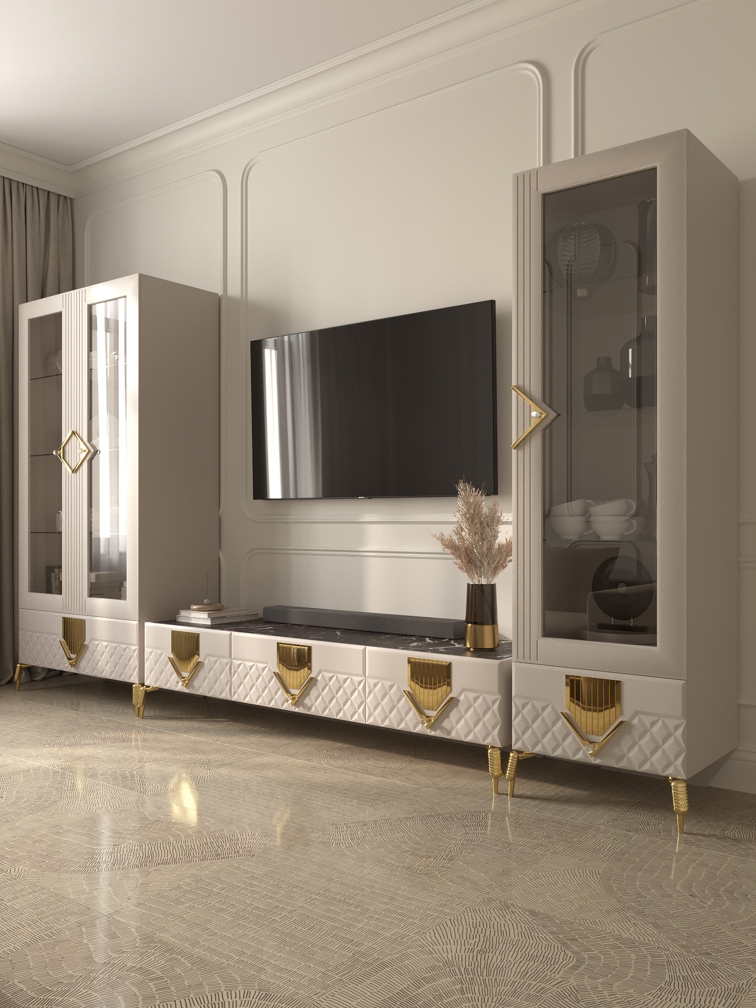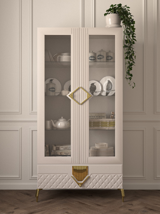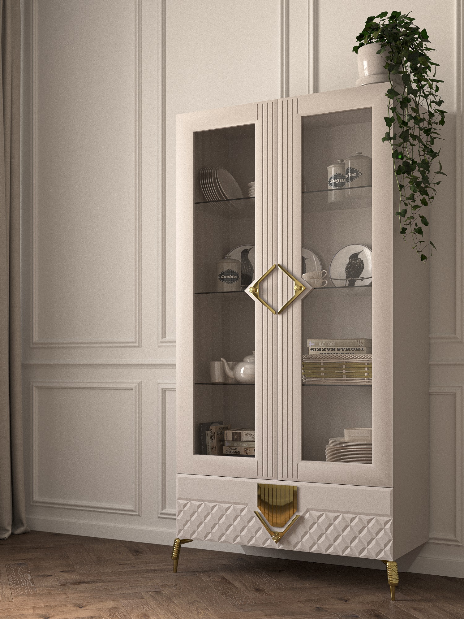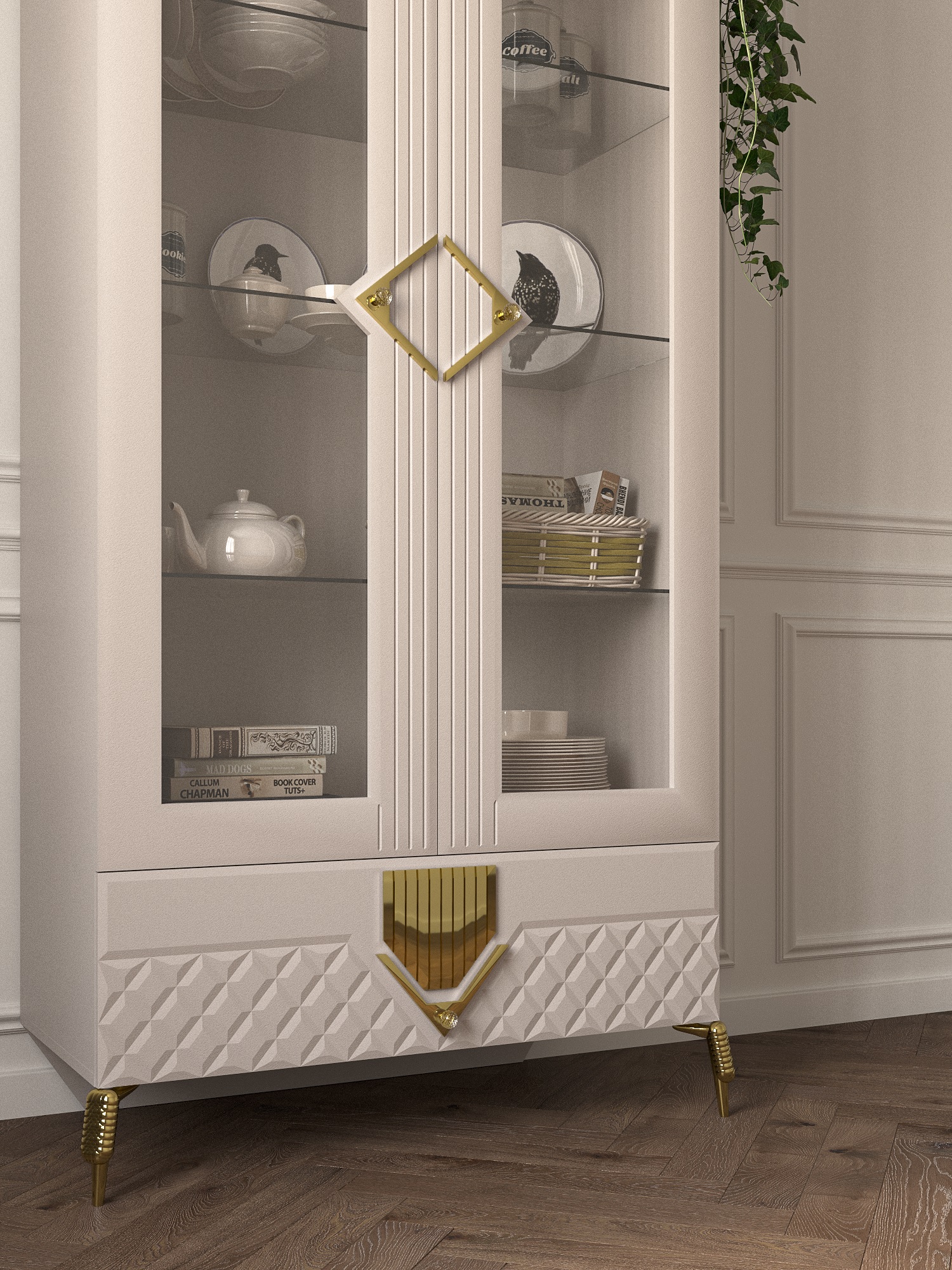Шкаф витрина распашной 2-дверный Савелья кашемир (Золотой глянец)