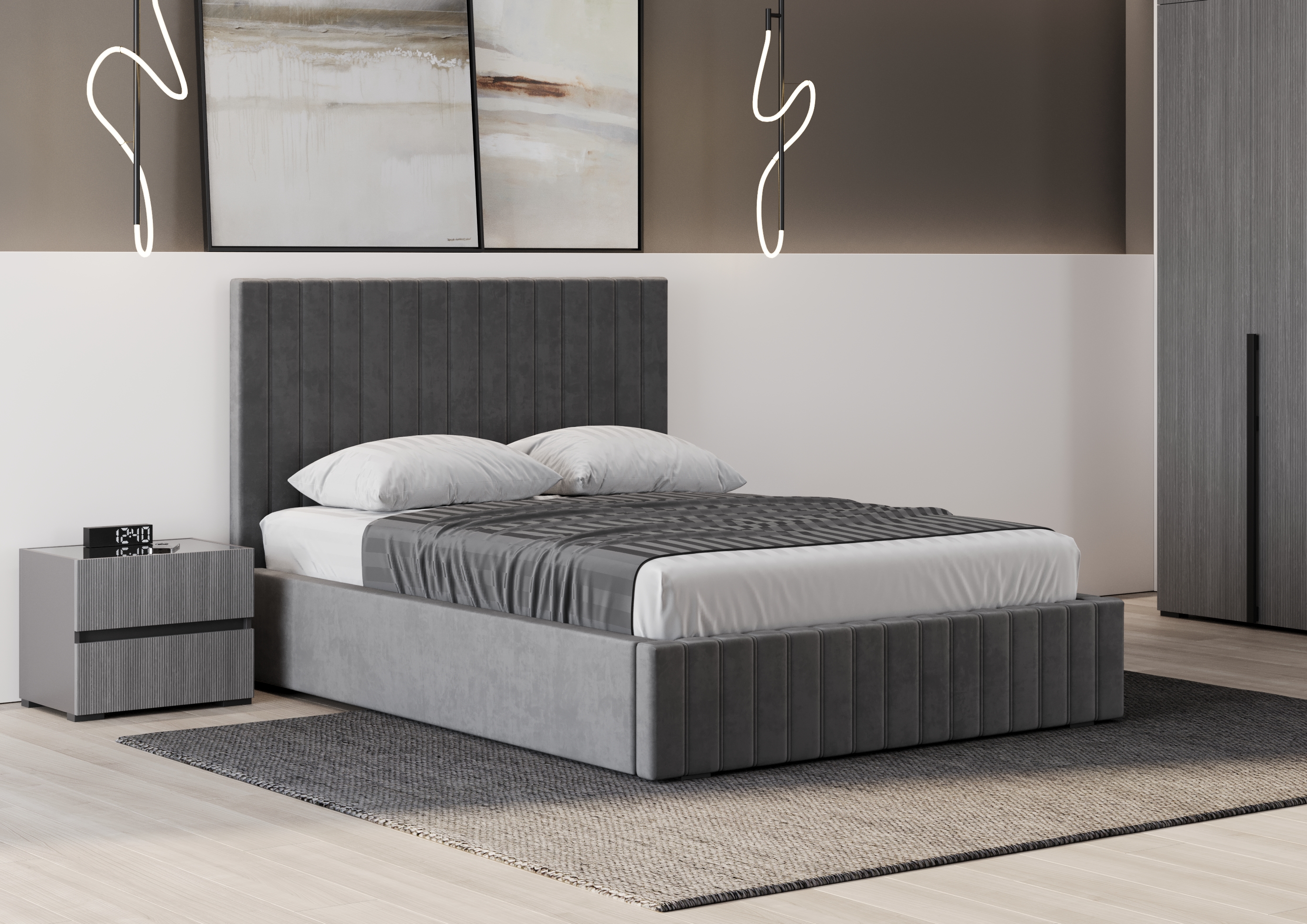 Кровать двуспальная Болонья велюр с ПМ 180х200 см (Серый)