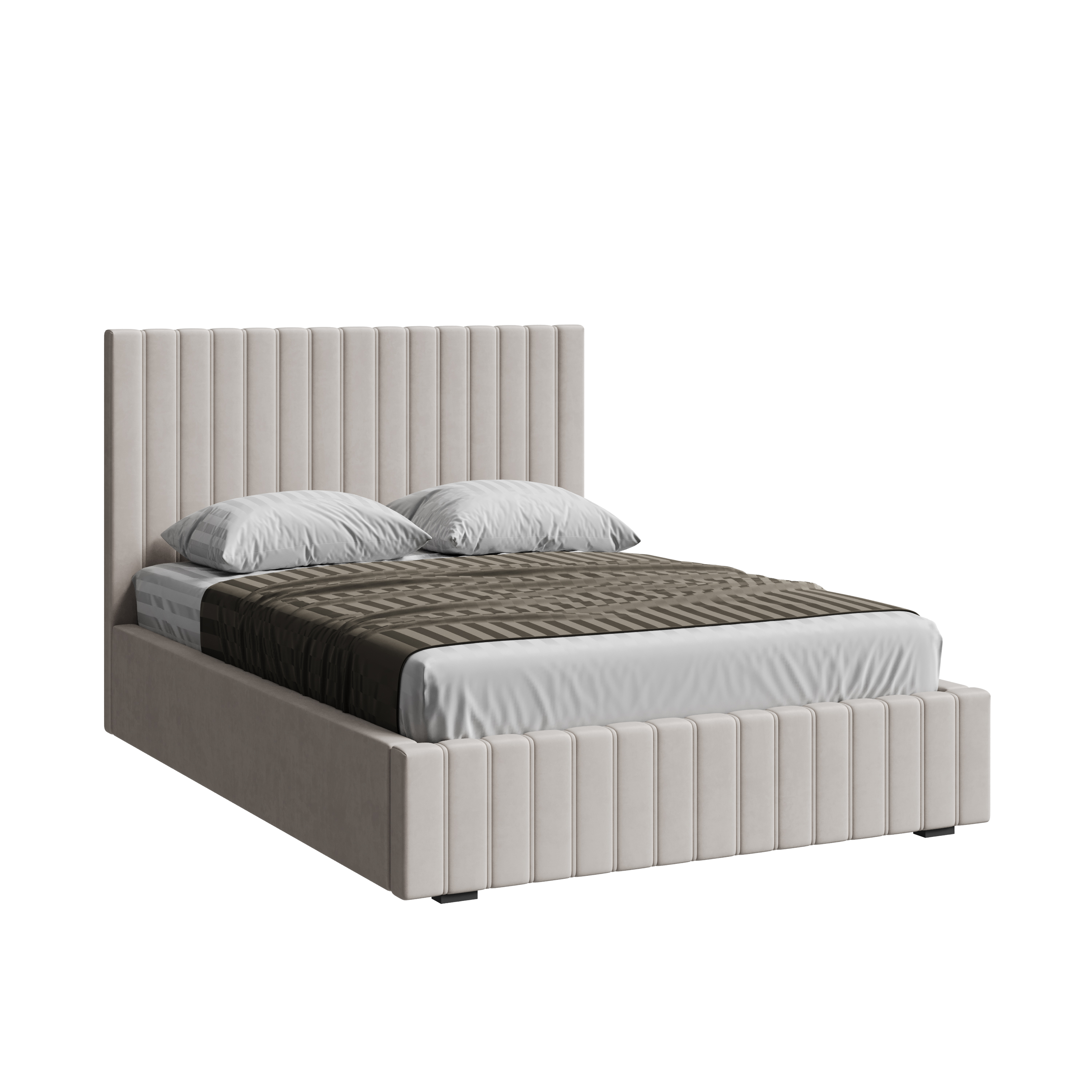 Кровать двухспальная в современном стиле.Эта стильная двухспальная кровать станет ярким акцентом в вашем интерьере, сочетая современный минимализм и высокую практичность. Благодаря использованию антивандальной ткани велюр, кровать устойчива к повреждениям и загрязнениям, обеспечивая долгий срок службы. Её утончённый дизайн идеально впишется в различные стили, создавая атмосферу уюта и комфорта.