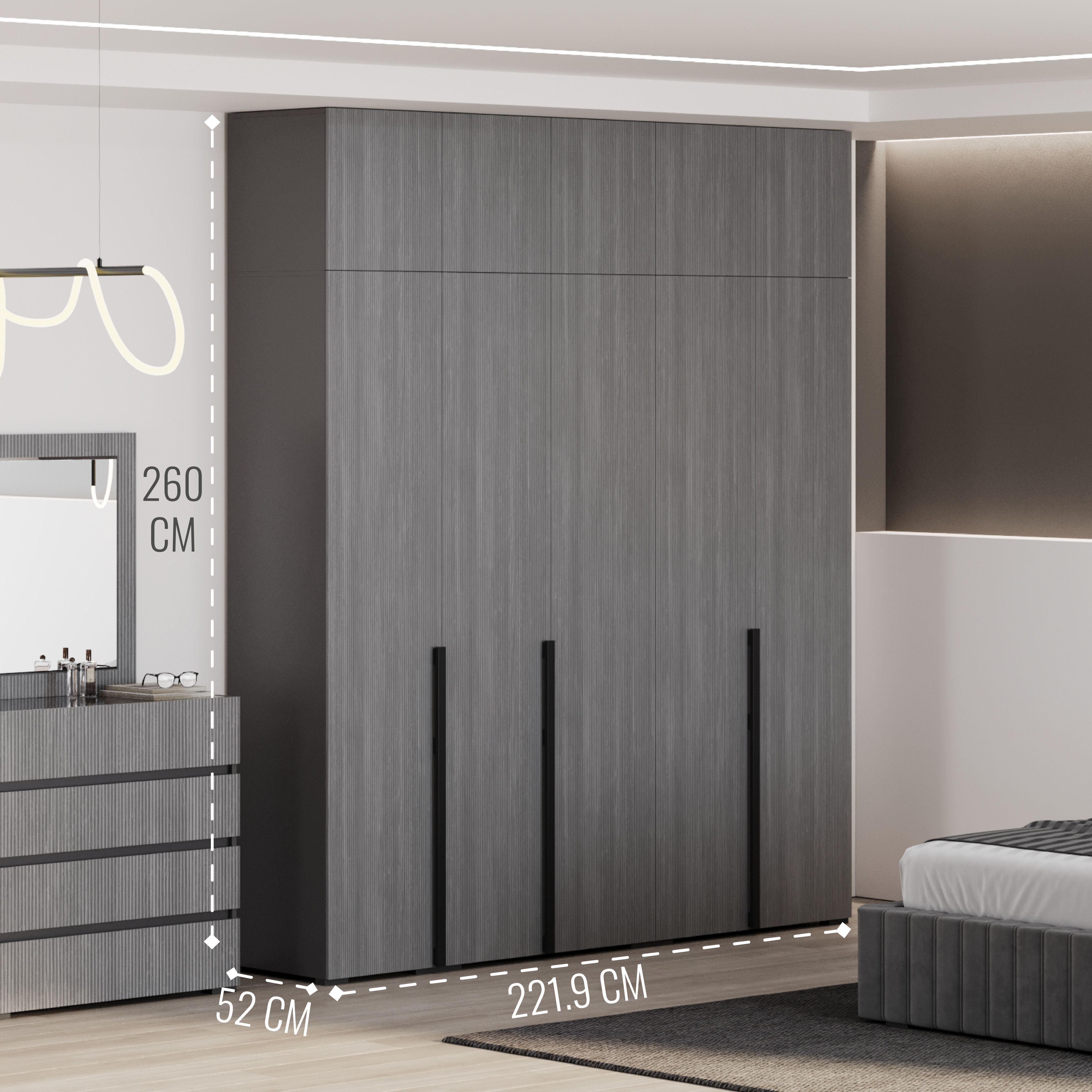 Шкаф в спальню — это не просто элемент мебели, а важная часть интерьера, которая помогает поддерживать порядок и организованность. Мы представляем вам 5-дверный распашной шкаф с антресолью, который станет идеальным решением для вашей спальни.