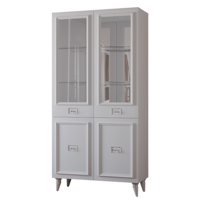 Шкаф витрина Валенсия 2-х дверный серебро 100х45х200 см (Белый)