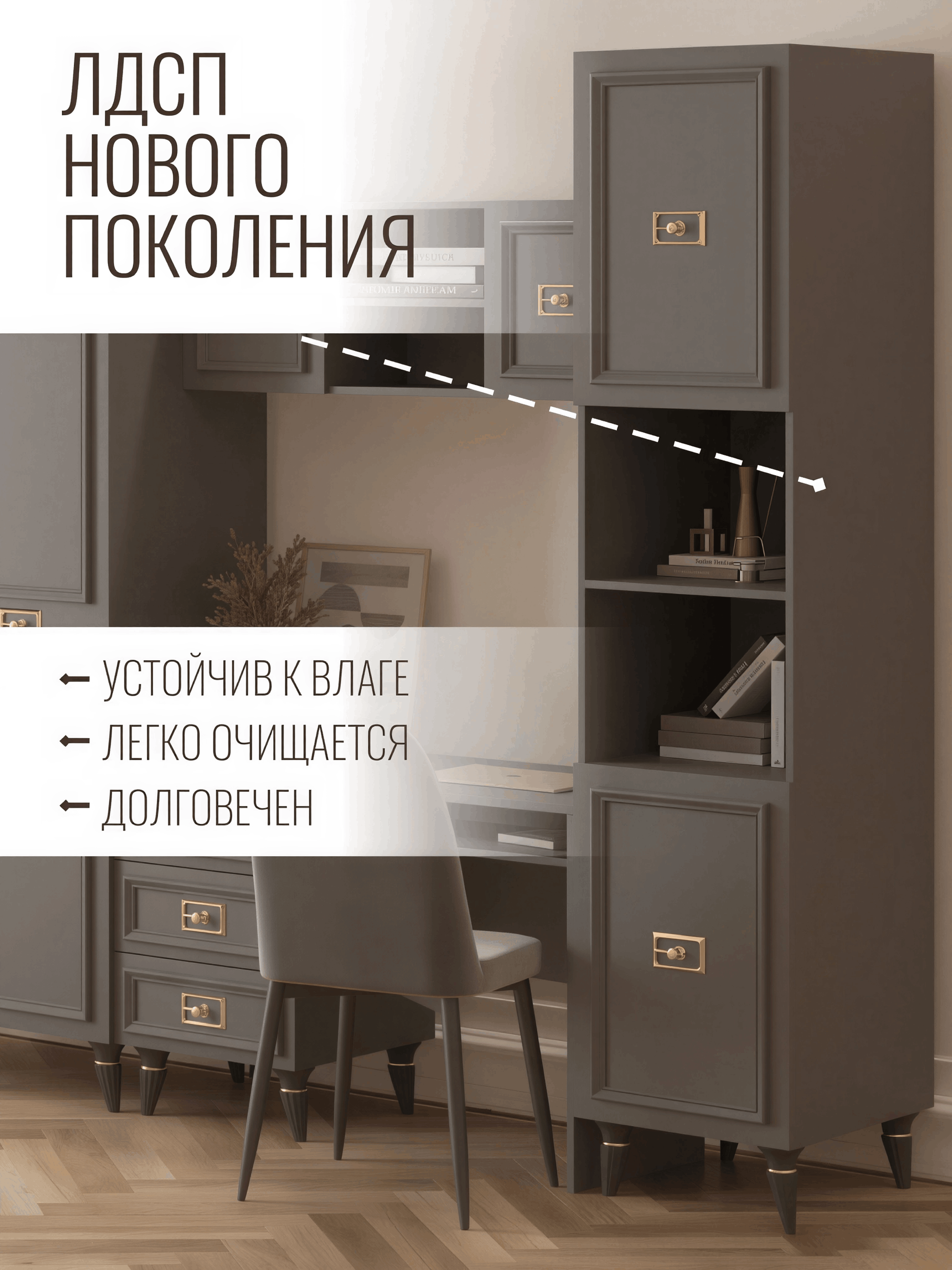 Добро пожаловать к организации вашего рабочего пространства с нашим удивительным пеналом, изготовленным из прочного ЛДСП. Этот пенал с двумя верхними и двумя нижними створками, а также двумя полками, разработан, чтобы сделать вашу жизнь более удобной и организованной.Особенности:Просторное хранение: С двумя верхними и двумя нижними створками, а также двумя промежуточными полками, этот пенал предоставляет множество места для хранения ваших вещей, документов и других предметов.Современный дизайн: Его современный дизайн и нейтральная цветовая палитра позволяют легко вписать его в любой интерьер.Прочность и надежность: Изготовлен из высококачественного ЛДСП, он обеспечивает долгий срок службы и устойчивость к повреждениям.Легкий монтаж: Простой монтаж позволит вам быстро насладиться всеми преимуществами этого пенала.Универсальное применение: Подходит как для домашнего использования, так и для офиса, обеспечивая организацию и удобство.Не упустите возможность организовать свое пространство с помощью этого универсального и стильного пенала из ЛДСП. Улучшите свою продуктивность и комфорт сейчас!
