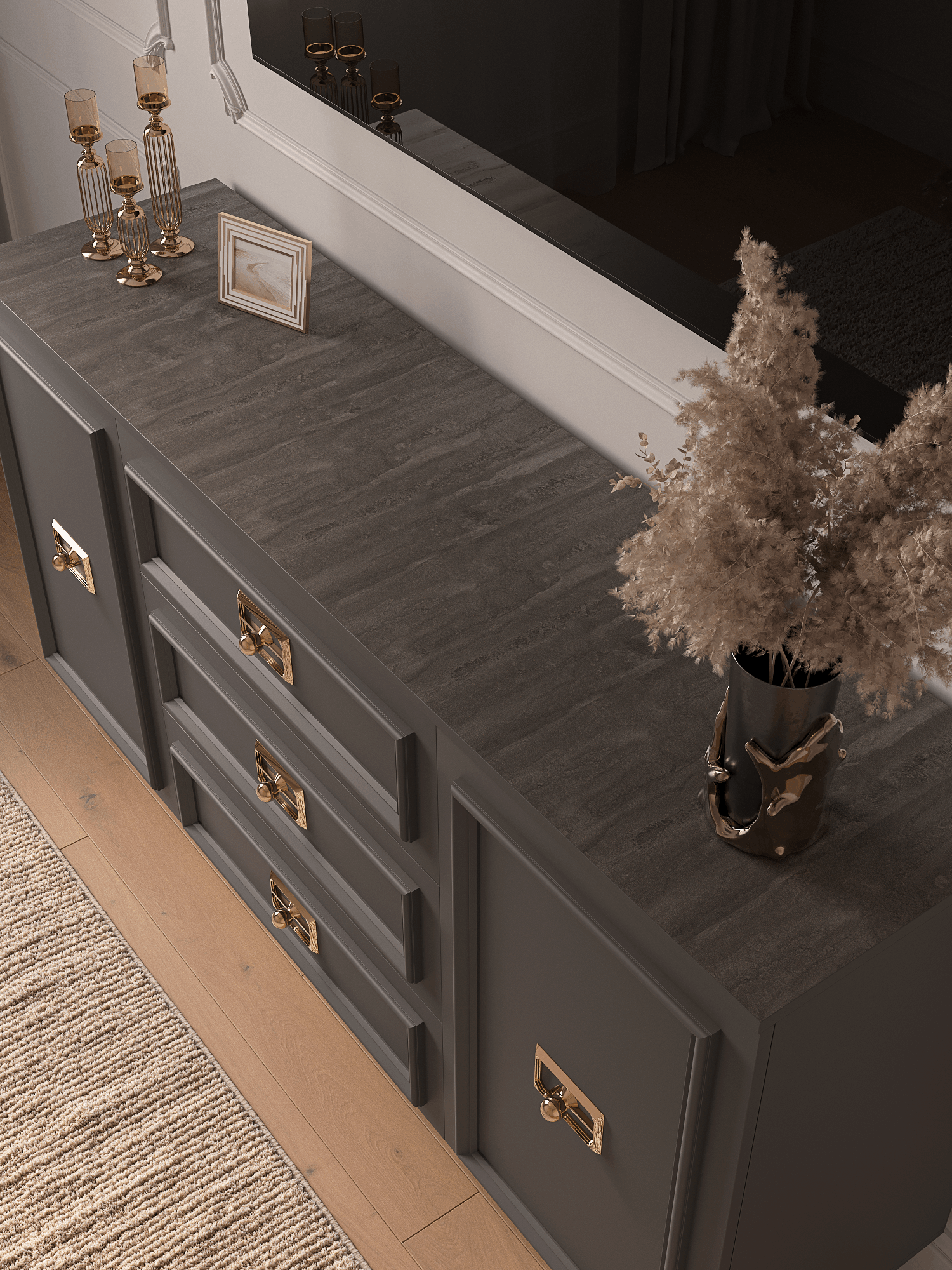 Комод с красивыми круглыми шарообразными ручками на высоких ножках- это сочетание итальянского стиля с современными тенденциями. Этот комод всегда будет стильным и актуальным элементом интерьера. Идеально подойдёт для спален, гостинных, прихожих или кабинетов, где требуется не только функциональность, но и изысканный дизайн. Подчеркнет вашу индивидуальность и стиль, а также поможет создать гармоничный интерьер в любом помещении.