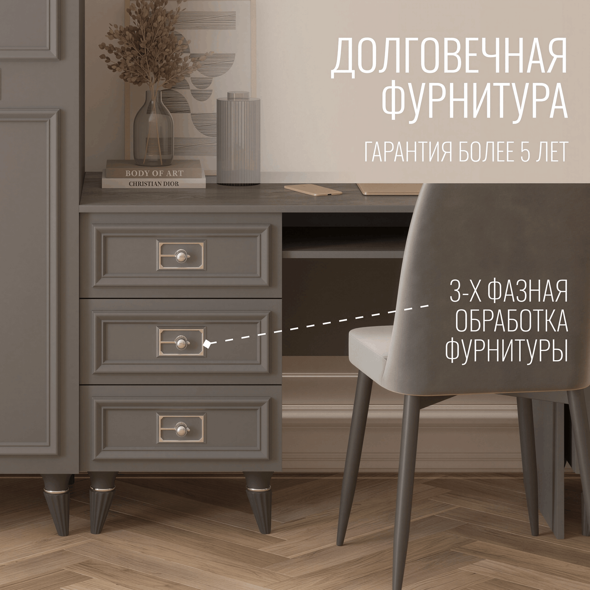 Преобразите ваш рабочий уголок в настоящее произведение искусства с нашим Письменным Настольным Столом в стиле неоклассика. Совмещая в себе функциональность, изыск и комфорт, этот стол станет неотъемлемой частью вашей спальни и местом, где зарождаются великие идеи. Не просто мебель, а источник вдохновения и творчества.