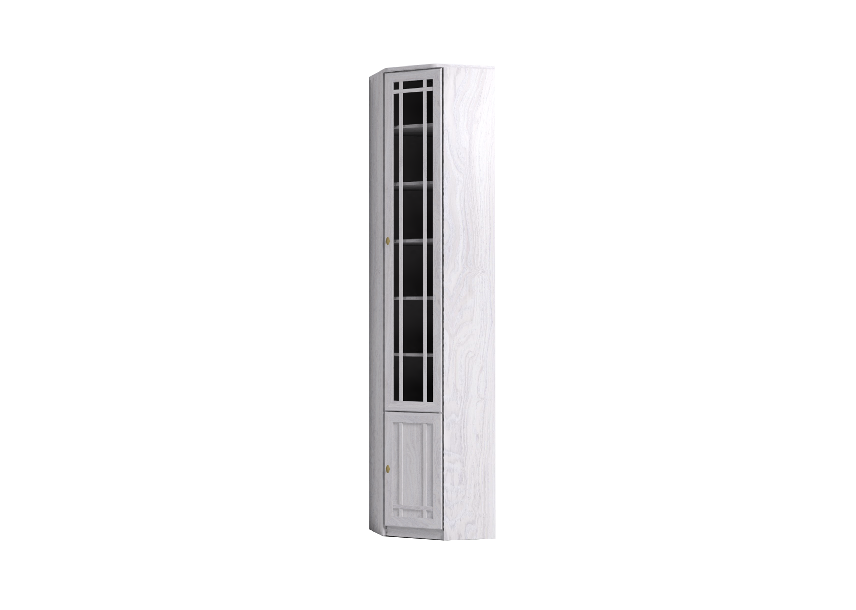Высокий книжный шкаф для угловой композиции домашней библиотеки. Можно установить в комнату с высотой потолка не менее 240 см. Широкие треугольные полки позволят хранить в библиотеке папки с документами, шкатулки с семейным архивом и фотографиями. Высота полок во всех шкафах для книг регулируется, для этого необходимо только установить полкодержатели на нужной высоте в подготовленные отверстия. Это позволит поставить на полки книги и альбомы разного формата. Тонированное стекло защищает книги от вредного воздействия солнечных лучей и убережет их от пожелтения. Двери не перенавешиваются. Книжный шкаф обязательно крепится к стене за подвесы и межсекционной стяжкой с другими шкафами в наборе. Библиотека выпускается без выборки под плинтус, чтобы каждый мог подрезать плинтус индивидуально. В противном случае остаются неаккуратные зазоры между модулем и стеной.