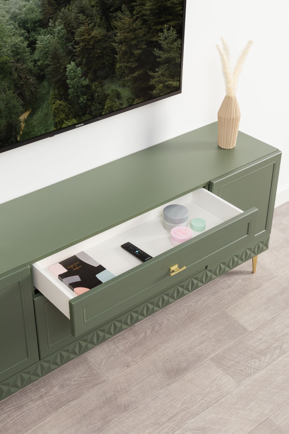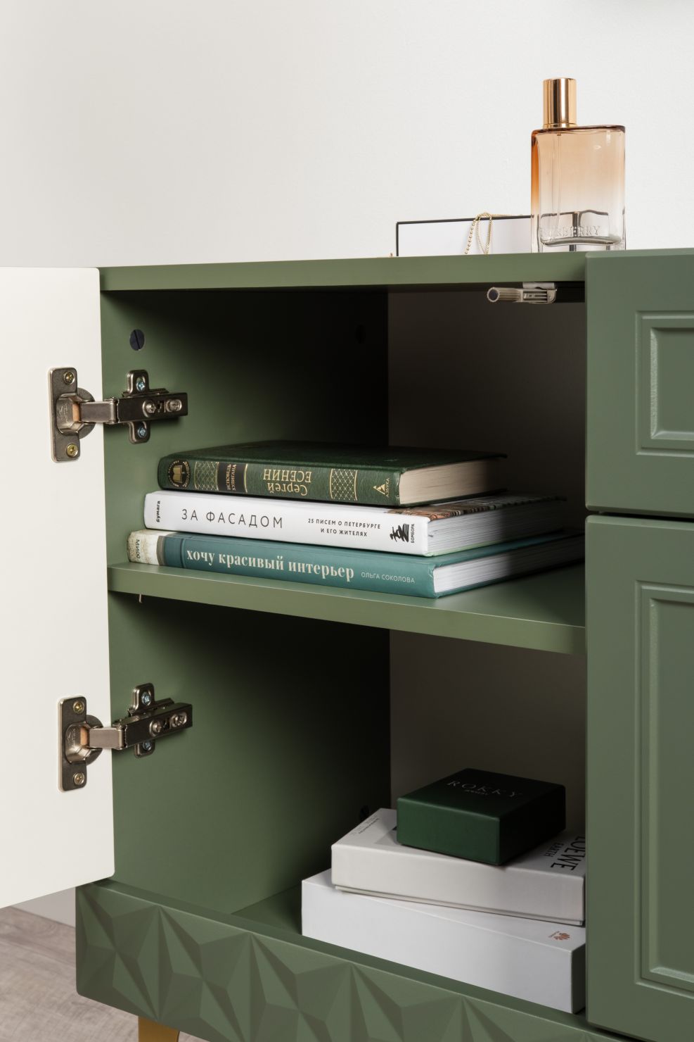 Комбинированная конструкция тумбы включает в себя выдвижные ящики