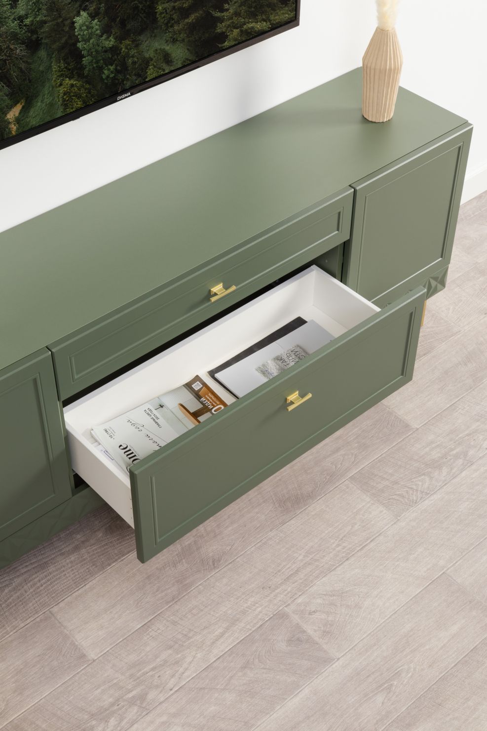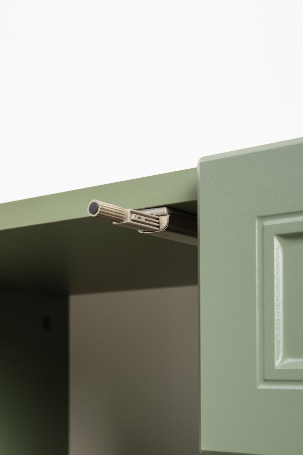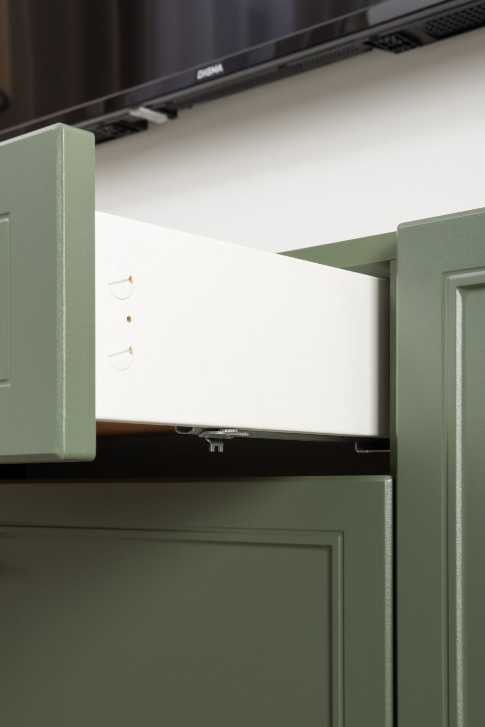Ящики установлены на шариковые направляющие скрытого монтажа с доводчиками.