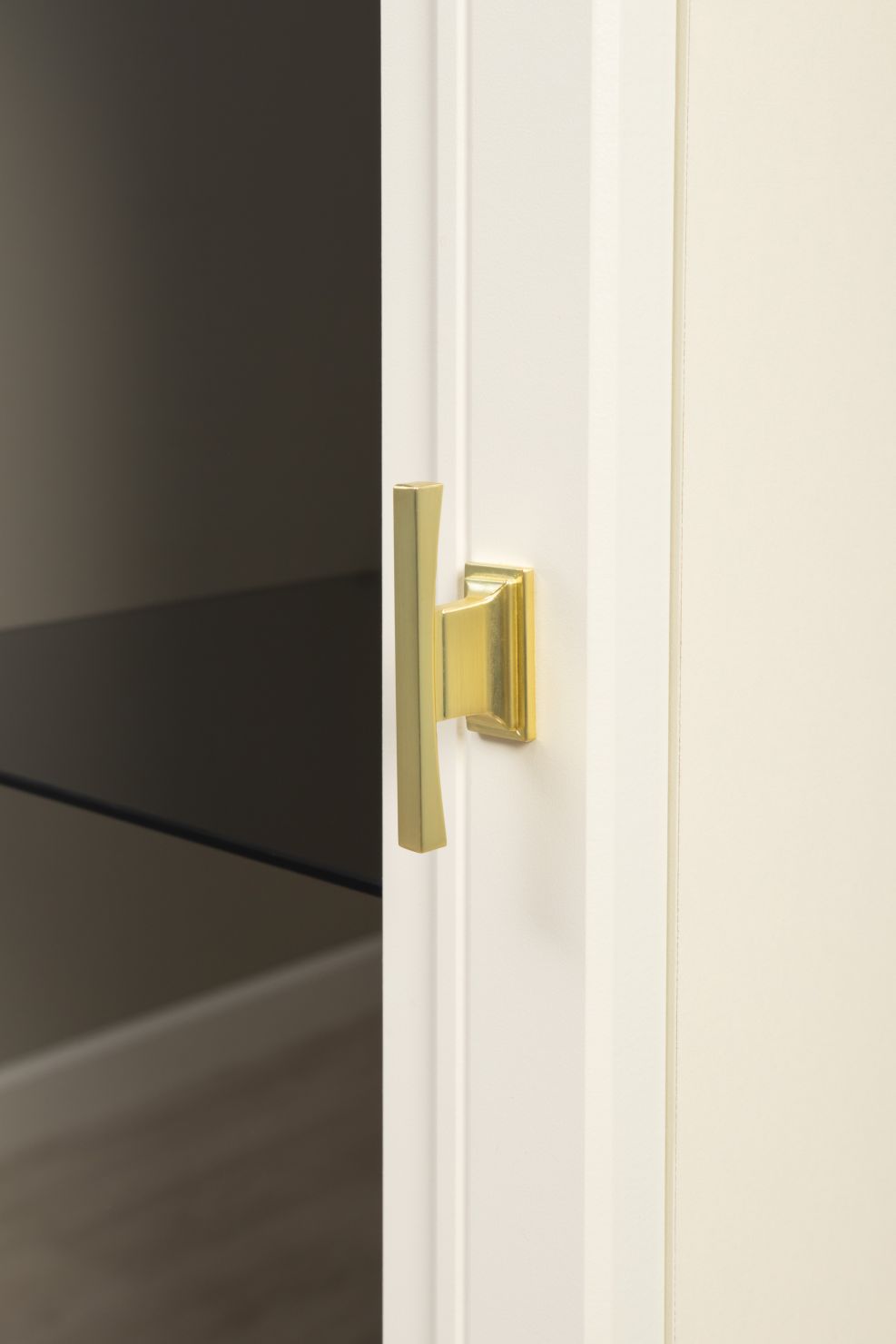 Шкаф-витрина имеет 2 распашые двери. Верхняя дверь со стеклянной вставкой,