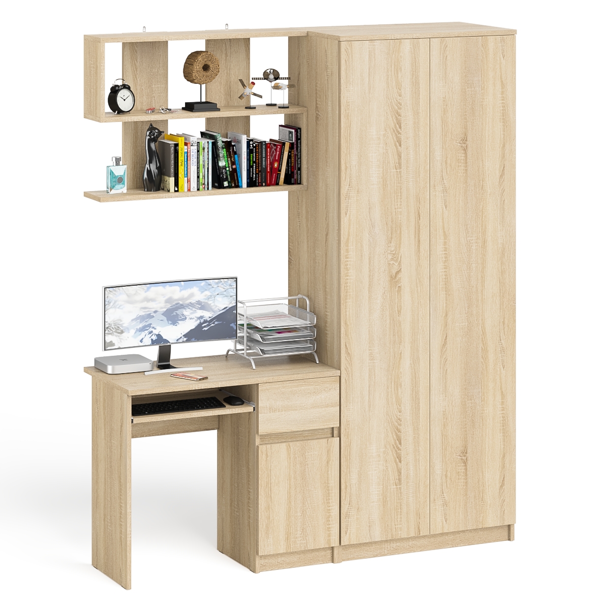 Отзывы о Столплит Компьютерный стол однотумбовый правый с ящиком и верхней полкой и платяной шкаф Мори МШ8001 Дуб сонома