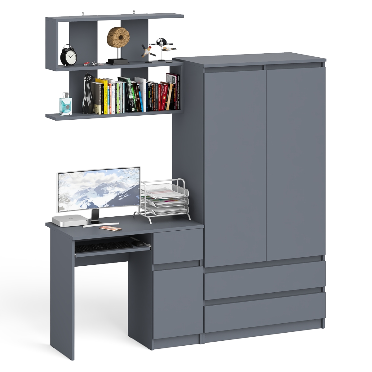 Стол компьютерный с ящиком МС-1 правый с навесной полкой и шкаф-комод МШ900.1 Мори (Графит) Код I0000450198
