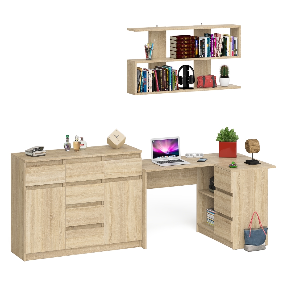 Угловой стол компьютерный Мори МС-16 правый с комодом МК1200.4 и открытой книжной полкой (Дуб сонома) Код I0000450210
