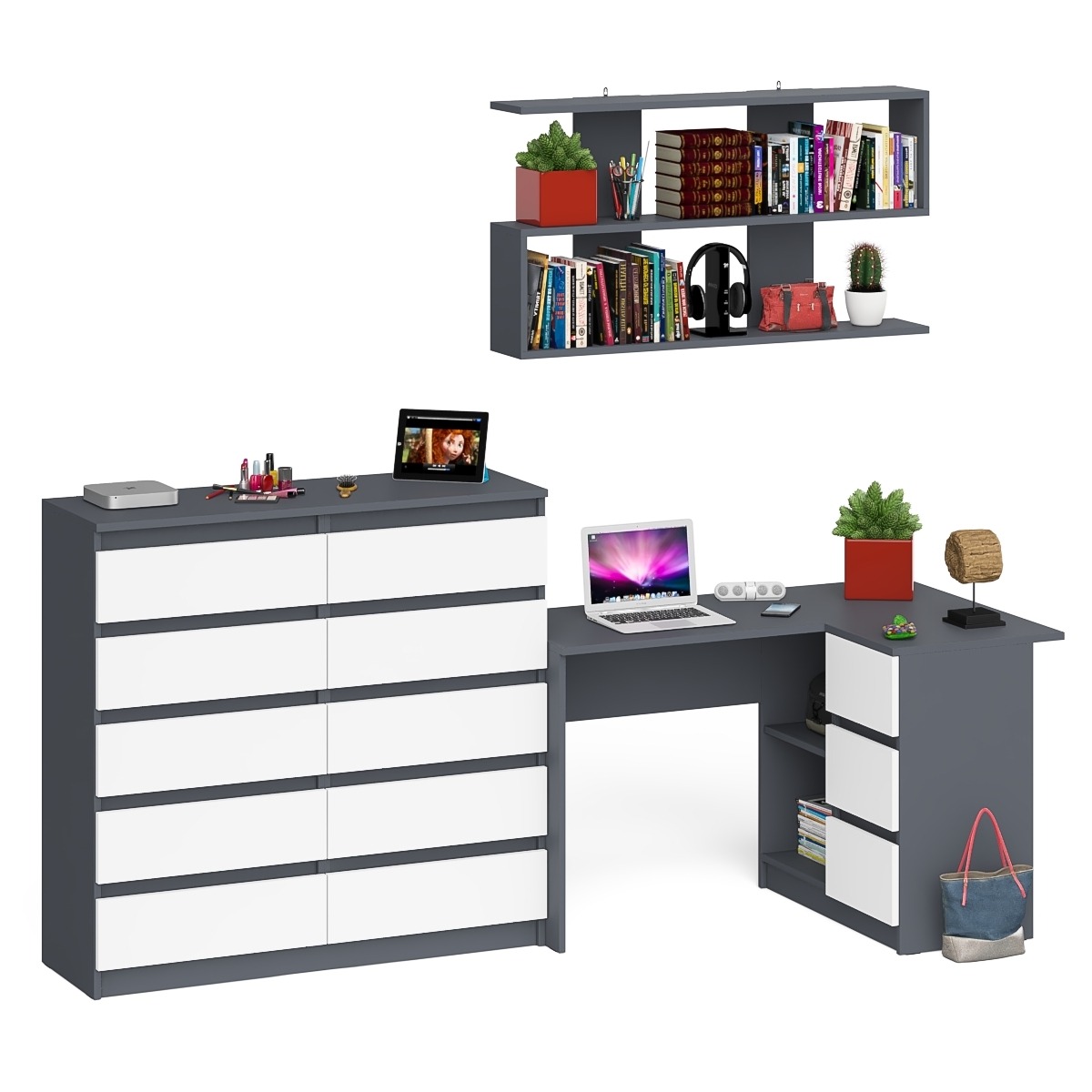 Мори набор мебели из углового компьютерного стола МС-16 правого с книжной полкой и комода МК1200.10 - минималистичный дизайн и доступная цена позволяет наслаждаться качественной и современной мебелью без значительных финансовых затрат!
