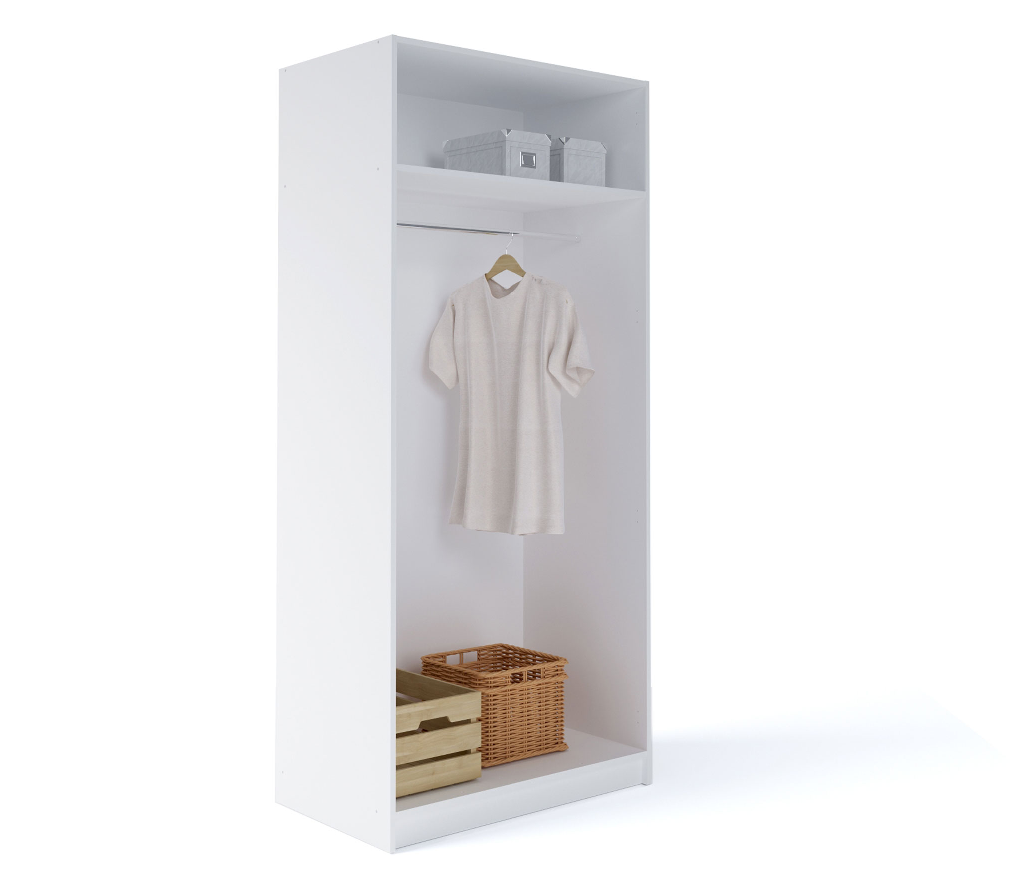 Шкаф выполнен из качественных материалов, обеспечивающих долговечность и надёжность конструкции. Фасад из белого цвета легко сочетается с любым интерьером и добавляет свежести и элегантности.