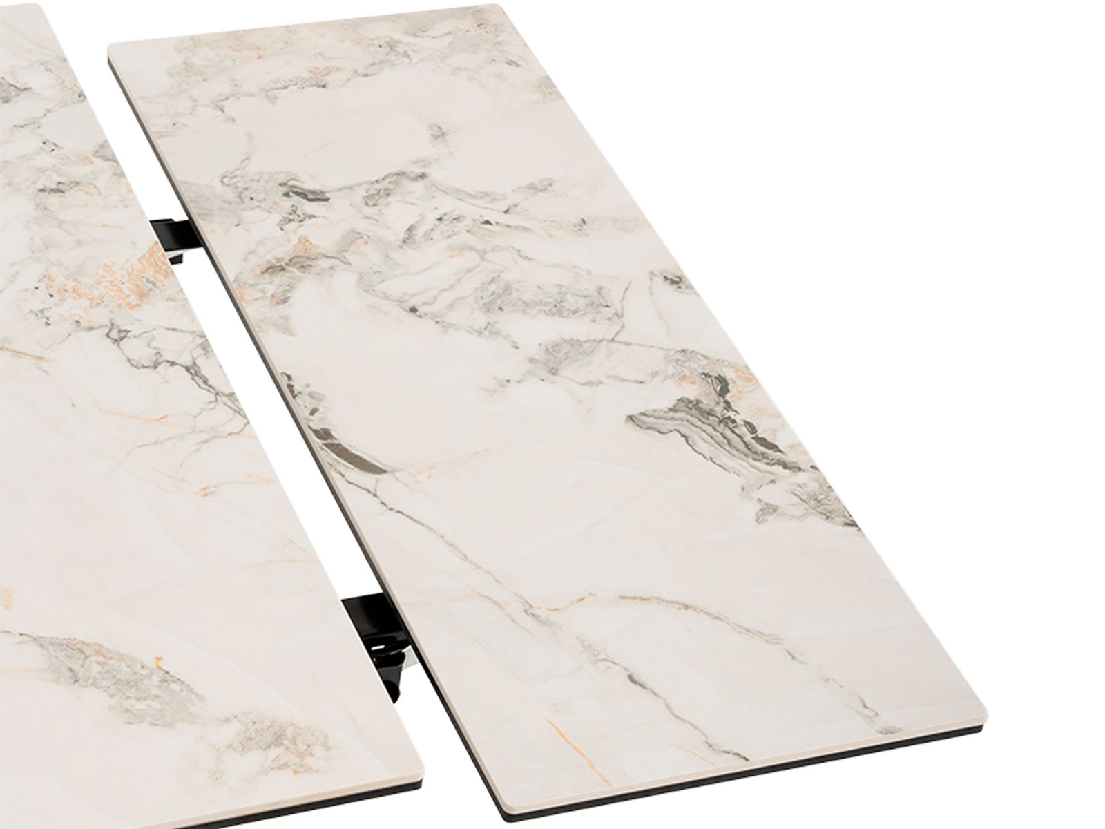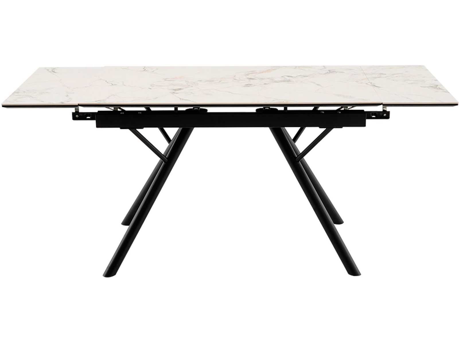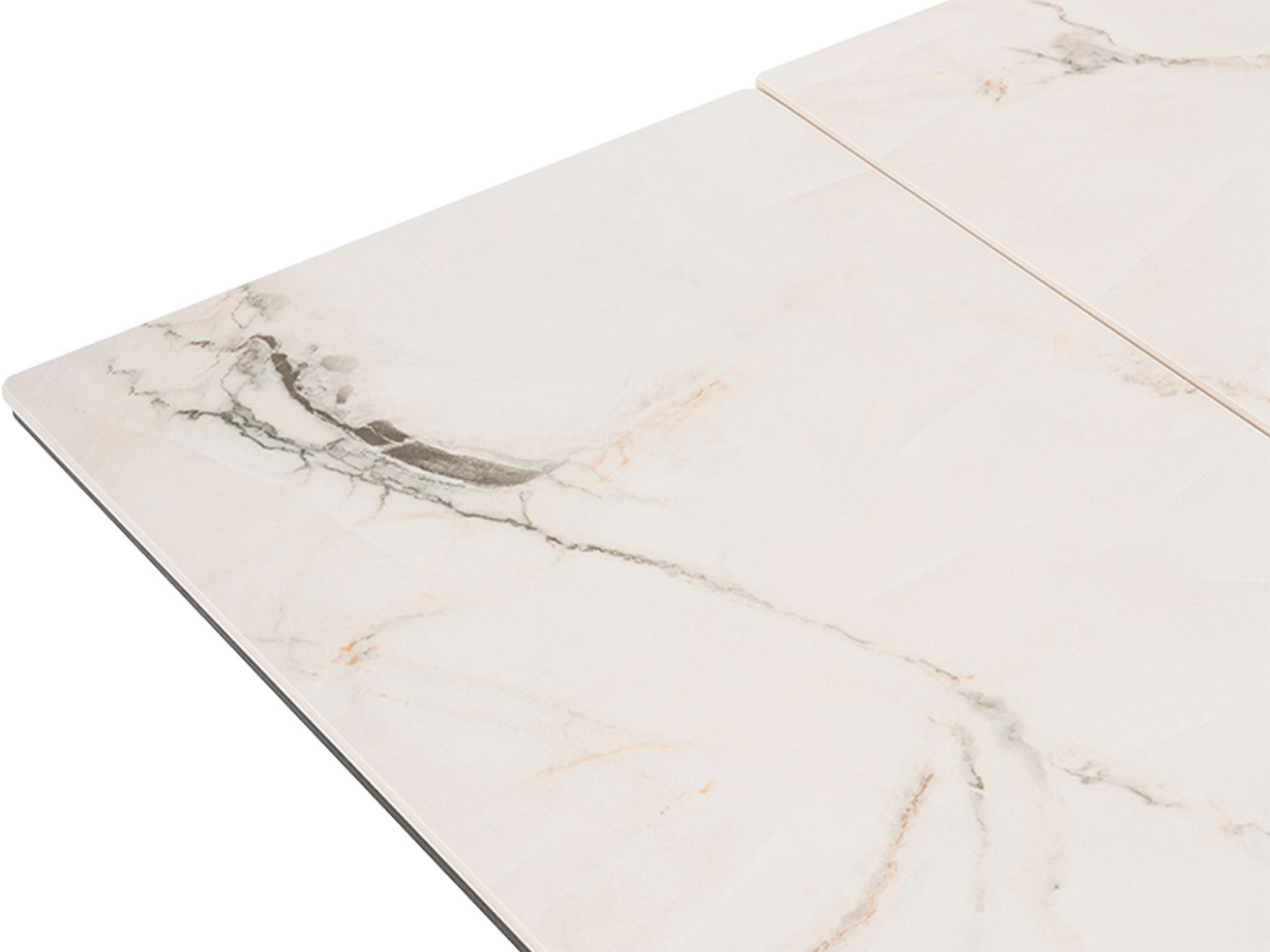 Стол обеденный раскладной Либертика впечатляет своей стильной эстетикой и продуманными деталями. Керамическая столешница украшена утончённым мраморным рисунком с мягкими серыми и бежевыми прожилками, придающими интерьеру светлый и изысканный акцент. Такая поверхность выглядит дорого и современно, подчёркивая вкус и статус хозяев. Благодаря механизму раскладки стол легко трансформируется с 120 до 180 см, позволяя с комфортом принимать гостей и подстраиваться под любые задачи. Прочное керамическое покрытие устойчиво к царапинам, нагреву и влаге, а металлическое основание с эффектными пересекающимися ножками обеспечивает отличную устойчивость и придаёт конструкции современный характер. Стол для кухни Либертика станет центром обеденной зоны в современном, минималистичном или скандинавском интерьере. Его универсальное сочетание белой столешницы и чёрного основания легко комбинируется с разными стульями и декором, позволяя создавать гармоничные и стильные композиции для вашего дома. Разрешенная нагрузка до: 40 кг.