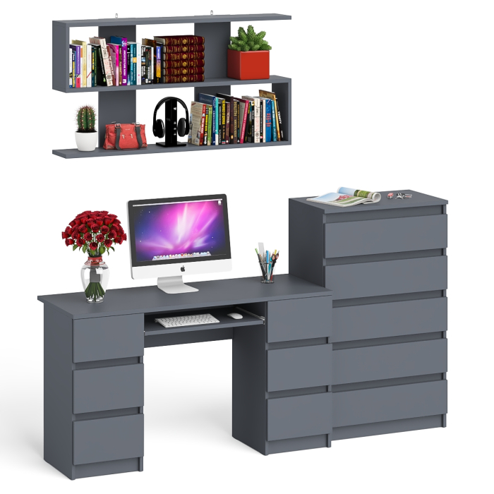 Отзывы о Столплит Стол для работы МС-2 с высоким комодом на пять ящиков и навесной полкой Мори Графит