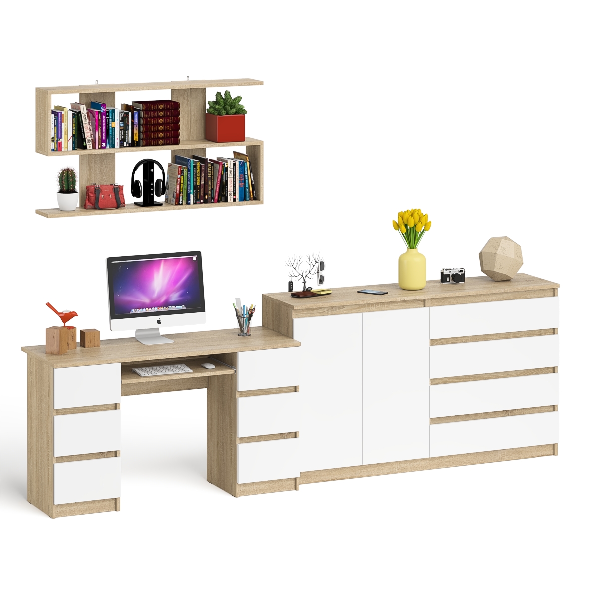 Выполнено в 5 цветах: белый, графит, графит/белый, дуб сонома и дуб сонома/белый.