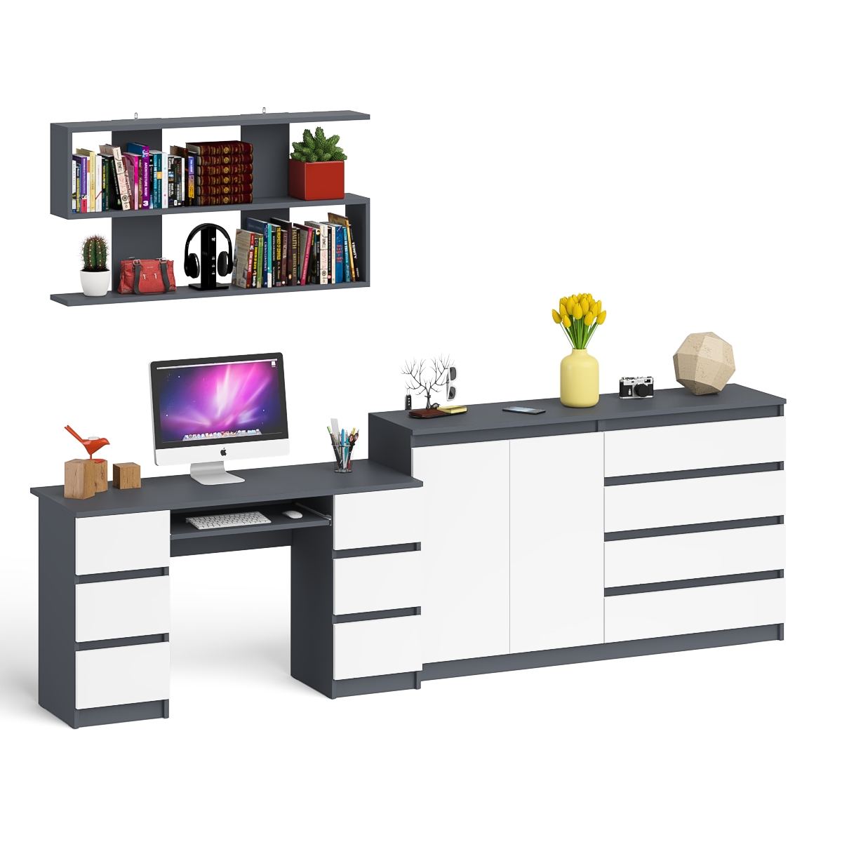 Выполнено в 5 цветах: белый, графит, графит/белый, дуб сонома и дуб сонома/белый.