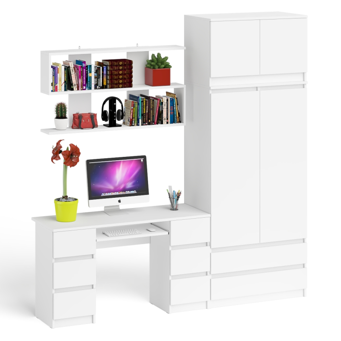 Шкаф-комод с антресолью Мори МШ900.1 со столом для работы и учёбы МС-2 и книжной полкой 1200 - минималистичный дизайн и доступная цена позволяет наслаждаться качественной и современной мебелью без значительных финансовых затрат! Комплектация включает компьютерный стол с двумя тумбами Мори МС-2, шкаф-комод два ящика и две дверки Мори МШ900.1 с антресолью Мори МА900.1 и навесную полку Плк-1200. Отсутствие ручек главное преимущество данной модели. Роль ручек выполняют сами фасады.