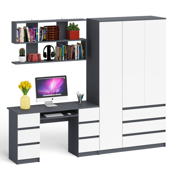 Выполнено в 5 цветах: белый, графит, графит/белый, дуб сонома и дуб сонома/белый.