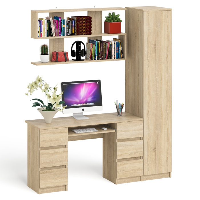 Отзывы о Столплит Компьютерный стол МС-2 с верхней полкой и пеналом для вещей Мори Дуб сонома