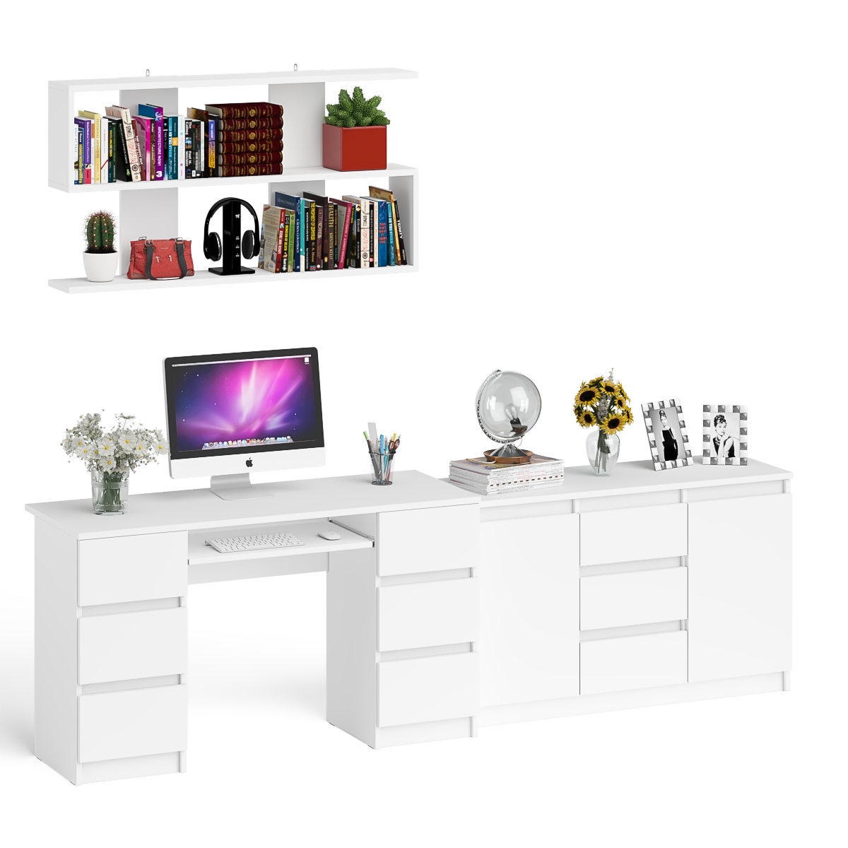Отзывы о Столплит Двухтумбовый стол компьютерный с ящиками МС-2 с тумбой-комодом и полкой 1200 Мори Белый